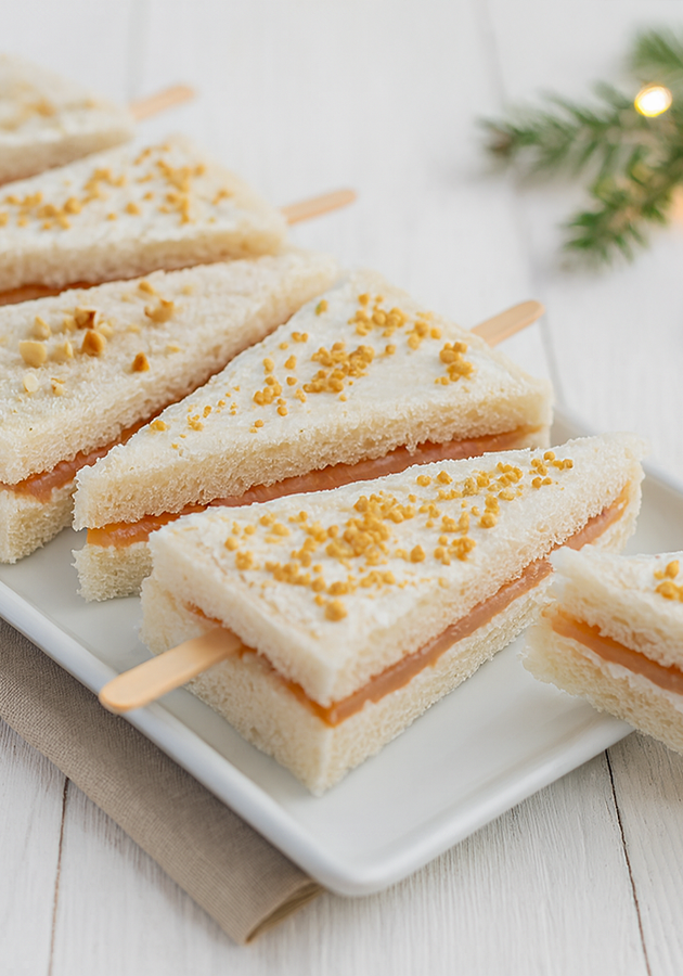AntipastiAlberelli Tramezzino al SalmoneScopri come preparare gli Alberelli Tramezzino al Salmone con pane morbido, formaggio fresco e granella di nocciole. Un antipasto veloce e scenografico che conquista tuttiRicetta di Giorgio Loda • 28 Novembre 2025Club delle Ricette è anche su WhatsApp. Non perderti le ricette più nuove e ogni giorno i menu migliori e le idee per cucinare. Iscriviti al Canale Difficoltà MediaPreparazione 10 minutiDosi per 10 pezzi Guarda le VideoricetteSeguici su YouTube Anelli di Zucchine Seguici su YouTube! Anelli di Zucchine Invia × Facebook Twitter Email Pinterest Salva StampaAlberelli Tramezzino al Salmone Cremosi e Veloci, Perfetti per le Feste Se volete sorprendere i vostri ospiti con un antipasto originale, scenografico e veloce da realizzare, la ricetta degli alberelli tramezzino al salmone è ciò che fa per voi. Perfetti per abbellire la tavola delle feste, questi tramezzini a forma di albero di Natale sono un vero e proprio inno alla creatività e al gusto: con il loro aspetto invitante e il sapore raffinato, porteranno un tocco di magia ad ogni buffet o aperitivo natalizio. Immaginate di servire un piatto freddo a base di salmone affumicato che conquista sia l’occhio che il palato, offrendo la freschezza e la leggerezza di ingredienti selezionati con cura. La base di pane bianco morbido racchiude una farcitura irresistibile, nella quale il formaggio spalmabile avvolge il salmone affumicato, regalando un contrasto di sapori e di consistenze esaltato dalla croccantezza della granella di nocciole. Siete alla ricerca di idee per antipasti natalizi con salmone che siano facili e d’effetto? Gli alberelli tramezzino sono la soluzione ideale: zero cottura, massima resa, rapidità nella preparazione e possibilità di personalizzare la ricetta secondo i vostri gusti o le esigenze degli ospiti. Chi desidera una versione vegetariana può optare per creme di verdure oppure sostituire il salmone con salumi a piacere. Oltre a essere perfetti come finger food con salmone e formaggio spalmabile da presentare su eleganti vassoi, questi alberelli renderanno ancora più speciale un aperitivo o una cena tra amici. Scoprite come preparare alberelli tramezzino al salmone e lasciatevi conquistare dal gusto unico di questo antipasto con salmone affumicato e pane bianco. Se amate i piatti freddi e cercate altre proposte a base di salmone, provate anche il Tronchetto di Natale Salato, le Tartine con Mousse di Salmone o le Patate Ripiene al Salmone. Per un buffet vario e colorato, non perdetevi anche le Tartellette Salate con Porri e Salmone e gli sfiziosi Crostini di Panettone e Salmone! Preparare questi tramezzini senza cottura per buffet sarà un vero piacere: in pochi minuti trasformerete ingredienti semplici in una deliziosa creazione che conquisterà tutti. Lasciatevi ispirare dalla fantasia e vivete il piacere della convivialità grazie a questa ricetta facile di tramezzini al salmone, pensata per rendere uniche le vostre feste.Ingredienti per 10 pezzi4 fette di Pane per Tramezzini200 g di Formaggio Spalmabile200 g di Salmone Affumicatoq.b. di Granella di noccioleq.b. di LimoneCopia Lista IngredientiApri in AppProcedimentoScarica la nostra APP Con meno pubblicità, puoi creare i tuoi ricettari e ricevere nuove ricette ogni giorno. Scarica APP Per preparare gli alberelli tramezzino al salmone, iniziate mettendo il formaggio spalmabile in una in cui aggiungere la granella di nocciole, mescolando con cura per amalgamare gli ingredienti.Proseguite spalmando il formaggio aromatizzato su tutte e quattro le fette di pane per tramezzini, coprendo bene l’intera lunghezza.Farcite ora due delle fette con il salmone affumicato, avendo cura di ricoprire tutta la superficie, e chiudetele con le altre due fette già spalmate di formaggio, formando così due grandi tramezzini rettangolari.Trasferite i tramezzini su un tagliere e, con un coltello affilato, tagliate dei triangoli alternando il verso del taglio (prima in un senso, poi nell’altro) per ricavare circa 5 alberelli da ogni coppia di fette.Inserite delicatamente uno stecco alla base di ogni triangolo, pressando leggermente per fissarlo bene, e disponeteli ordinatamente su un vassoio da portata.Per il tocco finale, spalmate una piccola quantità di formaggio sulla superficie esterna degli alberelli e decorateli con la granella di nocciole rimasta per simulare le decorazioni natalizie. Ricordate infine di scaricare la nostra App con contenuti esclusivi e meno pubblicità!Varianti e AlternativePotete creare versioni vegetariane sostituendo il salmone con verdure grigliate sottili o creme di verdure.ConsigliSe desiderate varianti sfiziose, potete sostituire il salmone con acciughe o mortadella, oppure utilizzare formaggi diversi come stracchino o ricotta. Per chi non ama il pesce, un paté di olive o funghi è un’ottima alternativa.ConservazionePotete servire gli alberelli subito oppure conservarli in frigorifero, ben avvolti nella pellicola trasparente, fino al momento del servizio.Commenti ★ ★ ★ ★ ★ × 4 / 5 You need to enable JavaScript to vote Annulla risposta Lascia un commento