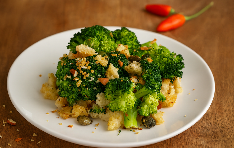 ContorniBroccoli al Forno con Pane al PeperoncinoScopri i Broccoli al Forno con Pane al Peperoncino, un contorno sfizioso e piccante arricchito da mandorle croccanti. Prova questa ricetta dal gusto irresistibile!Ricetta di Giorgio Loda • 6 Ottobre 2025Club delle Ricette è anche su WhatsApp. Non perderti le ricette più nuove e ogni giorno i menu migliori e le idee per cucinare. Iscriviti al Canale Difficoltà FacilePreparazione 25 minutiCottura 25 minutiDosi per 4 persone Guarda le VideoricetteSeguici su YouTube Anelli di Zucchine Seguici su YouTube! Anelli di Zucchine Invia × Facebook Twitter Email Pinterest Salva StampaBroccoli al Forno con Pane al Peperoncino Croccante e Mandorle, Contorno SfiziosoSe siete alla ricerca di un contorno vegetariano che sorprenda per sapore e consistenza, i broccoli al forno con pane al peperoncino sono la scelta perfetta da portare in tavola. Questa ricetta saporita con broccoli unisce la dolcezza dei broccoli cotti al forno con la croccantezza irresistibile del pane raffermo insaporito al peperoncino e il tocco unico delle mandorle tostate. Il risultato è un piatto light da forno, ideale sia per accompagnare secondi delicati che per aggiungere una nota gustosa a una cena veloce al forno.La preparazione è semplice ma ricca di soddisfazione: il segreto sta proprio nel contrasto tra la morbidezza dei broccoli e la fragranza del crumble di pane e mandorle. Un modo perfetto per valorizzare il pane avanzato, trasformandolo in un’irresistibile gratinatura che incornicia e completa la verdura. Questo rende la ricetta non solo gustosa ma anche anti-spreco, senza perdere leggerezza e bontà. Il profumo che si sprigiona in forno vi conquisterà e renderà speciale anche il menù più semplice.Chi è appassionato di ricetta broccoli gratinati o di varianti croccanti troverà in questa versione una proposta ricca di carattere, dal sapore leggermente piccante grazie al peperoncino e incredibilmente avvolgente grazie alle mandorle. Perfetta per chi cerca idee nuove per un broccoli croccanti e desidera un piatto light da forno senza carne ma intenso e appagante. Scoprite quanto sia semplice e gustoso realizzare una ricetta con pane raffermo che sappia conquistare tutta la famiglia.Se amate piatti a base di broccoli, non perdete le nostre varianti come i Broccoli al Forno, i Broccoli Gratinati, i Broccoli Croccanti al Forno o le sfiziose Crocchette di Broccoli e Patate al Forno. Pronti a scoprire come realizzare questi irresistibili broccoli al forno con pane al peperoncino?Ingredienti per 4 persone2 Broccoli2 Uova2 cucchiaini di Capperi Dissalati2 Peperoncini Freschi2 cucchiai di Mandorleq.b. di Latteq.b. di Pane Casereccioq.b. di Olio Extravergine d'Olivaq.b. di Sale Finoq.b. di Pepe NeroCopia Lista IngredientiApri in AppProcedimentoScarica la nostra APP Con meno pubblicità, ricettari personali e nuove ricette per cucinare ogni giorno. Scarica APP gratis Per preparare i Broccoli al Forno con Pane al Peperoncino iniziate pulendo i broccoli: dividete le cime e lessatele in acqua calda salata. Tagliate il pane a fette e privatelo della crosta. Sbriciolate un paio di fette in maniera grossolana per poi farle insaporire in una padella con olio e peperoncino a pezzetti e tagliate le altre in pezzetti di medie dimensioni.Sbattete ora in una capiente ciotola le uova con un goccio di latte, sale e pepe e immergete le fette di pane nel composto prima di porle all’interno della pirofila. Arrivati a questo punto aggiungete alla padella contenente le briciole croccanti anche i capperi e le mandorle tritate, mescolando per bene il tutto. All’interno della pirofila coprite le fette di pane con i broccoli e cospargete tutto prima con il composto alle uova avanzato e poi con le briciole di pane. Aggiungete prima di infornare un filo d’olio e mettete la teglia in forno a 180°C per circa 10 minuti attendendo successivamente la doratura in modalità grill. Quando i Broccoli al Forno con Pane al Peperoncino sono dorati sfornateli e serviteli. Ricordate infine di scaricare la nostra App con contenuti esclusivi e meno pubblicità!Varianti e AlternativeSe volete realizzare dei Broccoli al Forno con Pane al Peperoncino in versione vegan vi basterà semplicemente sostituire il Latte Vaccino con del Latte Vegetale.ConsigliPer mantenere i Broccoli di un bel colore verde vivo, dopo la cottura potete metterli a raffreddare in una ciotola piena d’acqua fredda e ghiaccio.ConservazioneVi consiglio di consumare i Broccoli al Forno con Pane al Peperoncino al momento, ma se dovessero avanzarvi potete coprire la teglia con della pellicola trasparente e riporla in frigorifero per un giorno. Eventualmente potete anche trasferire il tutto in un contenitore ermetico.Commenti ★ ★ ★ ★ ★ × 4 / 5 You need to enable JavaScript to vote Annulla risposta Lascia un commento