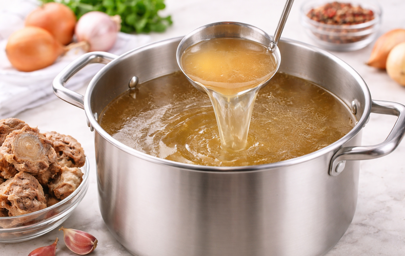 Brodi e FondiBrodo di OssaScopri il brodo di ossa: ricco di collagene, glicina e minerali essenziali, è perfetto per rafforzare il sistema immunitario e arricchire zuppe e piatti tradizionaliRicetta di Andrea Bosetti • 7 Gennaio 2026Club delle Ricette è anche su WhatsApp. Non perderti le ricette più nuove e ogni giorno i menu migliori e le idee per cucinare. Iscriviti al Canale Difficoltà MediaPreparazione 10 minutiCottura 8 oreDosi per 3 litri Guarda le VideoricetteSeguici su YouTube Anelli di Zucchine Seguici su YouTube! Anelli di Zucchine Invia × Facebook Twitter Email Pinterest Salva StampaBrodo di Ossa Ricco di Collagene: Nutriente, Rigenerante e Facile da PreparareQuando le temperature scendono e sentite il bisogno di nutrirvi in modo genuino, nulla è più confortante di un buon brodo di ossa fatto in casa. Preparare la ricetta del brodo di ossa non è solo un gesto d’amore, ma anche un modo eccezionale per prenderci cura del nostro benessere quotidiano. Ricco di collagene naturale, glicina e importanti minerali come calcio, magnesio e fosforo, questo brodo di ossa ricco di collagene diventa una vera coccola per l’intestino e un sostegno per chi ha bisogno di recuperare energia dopo periodi di stress o malattia. La cottura lenta per brodo di ossa – che può prolungarsi per molte ore, anche fino a tre giorni – è ciò che permette l’estrazione perfetta di tutte le proprietà benefiche, rendendo il brodo denso, brillante e dall’aroma inconfondibile.Potrete scegliere tra brodo di ossa con manzo oppure brodo di ossa con pollo, a seconda dei gusti e delle esigenze: entrambi regalano un risultato dal gusto intenso e avvolgente, perfetto sia da sorseggiare caldo come bevanda corroborante, sia come base preziosa per ricette elaborate. Pensate, ad esempio, a come possa arricchire primi piatti come Agnolini oppure come fondo per un classico Brodo di Carne o uno squisito Pasta al Ragù di Ossobuco. E non dimenticate che il brodo, con la sua versatilità, sarà una base insostituibile anche per la Salsa Gravy o per un delicato Brodo Vegetale.Imparare come fare il brodo di ossa vi permetterà di realizzare una preparazione ricca di benefici: un elisir tutto naturale da gustare caldo nelle sere d’inverno, oppure da usare come ingrediente segreto per dare profondità a ogni vostro piatto. Scoprite i benefici del brodo di ossa e rendete ogni pasto un momento di autentica cura per voi stessi!Ingredienti per 3 litri2 kg di Ossa di Bovino manzo4 l di Acqua1 di Cipolla1 di Carota1 costa di Sedano20 ml di Aceto di Meleq.b. di SaleCopia Lista IngredientiApri in AppProcedimentoScarica la nostra APP Con meno pubblicità, puoi creare i tuoi ricettari e ricevere nuove ricette ogni giorno. Scarica APP Per preparare il brodo di ossa, iniziate lavando e pelando le verdure: cipolla, carota e costa di sedano. Lavatele sotto acqua fredda corrente per rimuovere ogni impurità.Lavate accuratamente anche le ossa di manzo sotto acqua fredda, strofinandole delicatamente per eliminare eventuali residui.Trasferite le ossa lavate in una pentola capiente oppure direttamente nella vostra slow cooker, che rappresenta lo strumento ideale per questa preparazione.Aggiungete l’aceto di mele e il sale alle ossa. L’aceto aiuta l’estrazione dei minerali dalle ossa durante la cottura.Versate l’acqua fino a coprire completamente le ossa e le verdure, quindi chiudete il recipiente con un coperchio.Portate a ebollizione a fuoco medio-alto, quindi abbassate immediatamente la fiamma al minimo. Il brodo dovrà solo sobbollire leggermente, senza bollire vigorosamente.Lasciate cuocere per almeno 8 ore, preferibilmente fino a 20-24 ore in slow cooker per estrarre il massimo dei nutrienti. Potete interrompere e continuare la cottura nei giorni successivi fino al raggiungimento delle ore desiderate.Dopo la cottura, filtrate il brodo attraverso un colino fine, versandolo in contenitori. A questo punto potete decidere di invasare subito oppure far riposare il brodo per una notte in frigorifero.Se l’avete lasciato raffreddare in frigorifero, il giorno seguente troverete uno strato di grasso solidificato in superficie, il sego, che potete rimuovere e conservare separatamente per cucinare. Eliminate il grasso e il vostro brodo è pronto per l’uso. Ricordate infine di scaricare la nostra App con contenuti esclusivi e meno pubblicità!Varianti e AlternativeIl brodo di ossa può essere realizzato con ossa di diversi animali: per il pollo utilizzate le carcasse già cotte, magari avanzate da un pollo al forno, con un tempo di cottura di 18-24 ore; per il pesce la cottura sarà più breve, circa 8 ore; per l’agnello e la selvaggina i tempi sono simili al manzo. Potete arricchire il brodo aggiungendo durante la cottura erbe aromatiche come timo, rosmarino e alloro, oppure altre verdure come zenzero e aglio per varianti dal sapore più complesso.ConsigliCon le quantità indicate otterrete circa 3 litri di brodo dopo 20 ore di cottura in slow cooker. La cottura può essere effettuata in una grande pentola con coperchio ed essere interrotta e continuata nei giorni successivi. Per un brodo ricco di proprietà benefiche è consigliabile far cuocere per almeno 8 ore fino a un massimo di 48-72 ore per un brodo più concentrato. La densità finale dipende dalla quantità di collagene estratto dalle ossa. Utilizzate ossa con midollo e quelle delle articolazioni, come il ginocchio, particolarmente ricche di collagene. Per intensificare il sapore e l’aroma, potete tostare le ossa in forno prima della cottura. Il brodo di ossa può essere bevuto sia caldo che freddo, oppure aggiunto come base per la preparazione di altre pietanze.ConservazioneConservate il brodo di ossa in frigorifero per 5-6 giorni in vasi di vetro ben chiusi, oppure in congelatore in monoporzioni da scongelare e riscaldare al bisogno. Il sego ottenuto può essere conservato in frigorifero per un utilizzo successivo nella cucina.Commenti ★ ★ ★ ★ ★ ×