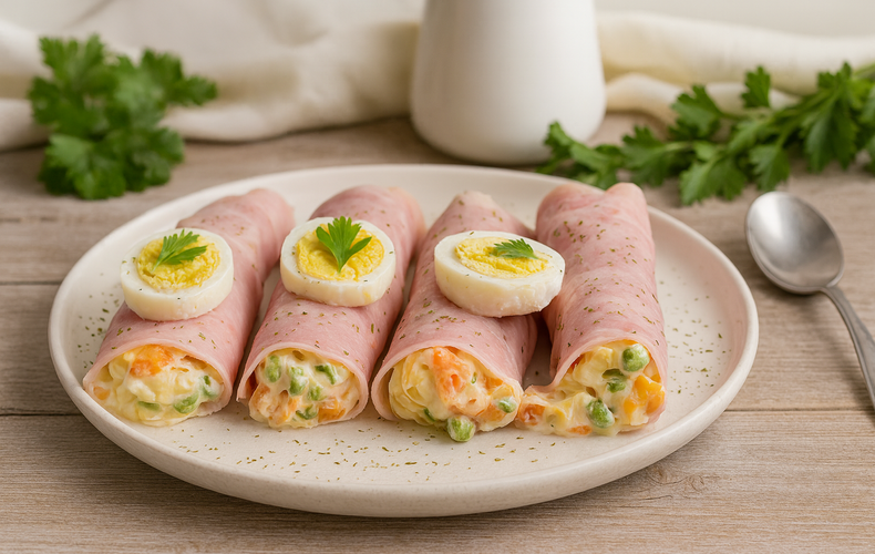 Cannoli di Prosciutto Cotto con Insalata Russa Cremosa, Antipasto Elegante