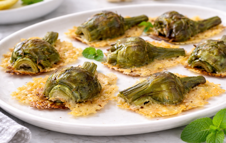 ContorniCarciofi Gratinati al ParmigianoScopri il gusto irresistibile dei Carciofi Gratinati al Parmigiano: croccanti al forno con una dorata crosta di formaggio, ricchi di fibre e antiossidanti. Provali subito!Ricetta di Andrea Bosetti • 30 Gennaio 2026Club delle Ricette è anche su WhatsApp. Non perderti le ricette più nuove e ogni giorno i menu migliori e le idee per cucinare. Iscriviti al Canale Difficoltà MediaPreparazione 10 minutiCottura 30 minutiDosi per 8 pezzi (4 persone) Guarda le VideoricetteSeguici su YouTube Anelli di Zucchine Seguici su YouTube! Anelli di Zucchine Invia × Facebook Twitter Email Pinterest Salva StampaCarciofi Gratinati al Parmigiano Croccanti, Sani e Pronti in 15 MinutiImmaginate di servire a tavola un contorno che sa trasformare i carciofi in una vera esplosione di gusto e croccantezza, sorprendente anche per chi non li ama particolarmente. La ricetta dei carciofi gratinati al parmigiano è un invito irresistibile a rivalutare questo ortaggio. Grazie al mix perfetto di parmigiano e pangrattato, otterrete i famosi carciofi gratinati croccanti, con un gratin dorato e profumato che conquista già al primo assaggio. Preparare questa variante leggera dei carciofi gratinati è semplicissimo: basta qualche passaggio per portare in tavola una pietanza che può essere protagonista in ogni stagione, ideale come contorno di carciofi gratinati o come sfizioso finger food per arricchire un aperitivo tra amici.Con pochi ingredienti per carciofi gratinati – freschezza dei carciofi, parmigiano reggiano, poco olio extravergine e una generosa spolverata di pangrattato – potete realizzare una ricetta genuina, profumata e davvero facile da replicare. Se vi state chiedendo come fare i carciofi al forno con parmigiano senza rinunciare alla leggerezza, questa è la soluzione perfetta: without frittura, solo la bontà autentica di un piatto cotto al forno oppure in friggitrice ad aria. In pochi minuti, avrete una ricetta facile dei carciofi gratinati pronta anche per una cena improvvisata; i carciofi gratinati vegetariani rappresentano infatti una proposta versatile che piace davvero a tutti, dai più piccoli agli adulti, grazie al cuore tenero avvolto da una superficie irresistibilmente croccante.Provate ad abbinarli ad altre preparazioni come le Tartellette ai Carciofi, i classici Carciofi al Parmigiano, oppure alle Verdure Gratinate al Forno per una tavolata ricca e colorata. Se amate sperimentare, non perdetevi i Finocchi al Gorgonzola Gratinati e la Torta Salata con Carciofi e Spinaci. I vostri carciofi al parmigiano per cena saranno sempre un successo: salutari, gustosi e sorprendentemente semplici!Ingredienti per 8 pezzi (4 persone)4 di Carciofi50 g di Parmigiano Reggiano o grana padanoq.b. di Sale Fineq.b. di Olio Extravergine d'Oliva1 di Limone il succo, per l'acqua acidulataCopia Lista IngredientiApri in AppProcedimentoScarica la nostra APP Con meno pubblicità, puoi creare i tuoi ricettari e ricevere nuove ricette ogni giorno. Scarica APP Per preparare i Carciofi Gratinati al Parmigiano iniziate pulendo i carciofi: togliete le foglie esterne più dure e quelle con punte spinose. Tagliate la punta superiore e parte del gambo, eliminando la porzione più fibrosa. Con un pelapatate pelate il gambo rimasto per renderlo più tenero.Dividete i carciofi a metà nel senso della lunghezza e rimuovete l’eventuale barba interna (la peluria) e le spine centrali con un coltellino.Immergete subito i carciofi puliti in una ciotola con acqua fredda e il succo di un limone: questo passaggio evita l’ossidazione e mantiene il colore verde brillante. Lasciateli in ammollo per qualche minuto.Scolate i carciofi dall’acqua acidulata e cuoceteli in una pentola con abbondante acqua salata bollente per 5-8 minuti, fino a quando risultano teneri ma ancora consistenti. Scolateli nuovamente e fateli raffreddare completamente.Rivestite una teglia da forno con carta forno e distribuite uniformemente il parmigiano grattugiato (o il grana padano) sulla superficie, creando un tappeto di formaggio.Adagiate i carciofi sulla teglia con la parte tagliata rivolta verso il basso, premendo leggermente sul formaggio. Condite il dorso dei carciofi con un filo di olio extravergine d’oliva.Infornate in forno statico preriscaldato a 180°C per circa 20-25 minuti, fino a quando la superficie risulta dorata e croccante. In alternativa, cuocete in friggitrice ad aria a 190°C per 6-8 minuti, controllando la doratura.Sfornate i carciofi gratinati, lasciateli intiepidire qualche minuto per permettere al formaggio di consolidarsi e serviteli ancora caldi per apprezzarne al massimo la croccantezza. Ricordate infine di scaricare la nostra App con contenuti esclusivi e meno pubblicità!Varianti e AlternativePotete arricchire la ricetta sostituendo metà del parmigiano con pecorino grattugiato per un sapore più intenso e caratteristico. Per una versione ancora più saporita, aggiungete pangrattato tostato mescolato al formaggio, oppure erbe aromatiche tritate come prezzemolo, timo o maggiorana. Se desiderate una versione vegana, sostituite il parmigiano con lievito alimentare in scaglie o formaggio vegano grattugiato. Per un tocco mediterraneo, potete spolverare i carciofi con mandorle tritate finemente mescolate al formaggio prima della cottura. In alternativa, dopo la cottura, guarnite con scaglie di parmigiano fresco, granella di nocciole tostate e un filo di miele per un contrasto agrodolce raffinato.ConsigliPer ottenere carciofi ancora più croccanti, asciugateli molto bene dopo la bollitura tamponandoli con carta da cucina: l’eccesso di umidità può compromettere la doratura del formaggio. Se preferite un sapore più deciso, potete aggiungere un pizzico di pepe nero o aglio in polvere sul dorso dei carciofi prima della cottura. Non buttate le foglie esterne più dure: potete utilizzarle per preparare una tisana digestiva lasciandole in infusione in acqua bollente per 10-15 minuti, sfruttando così