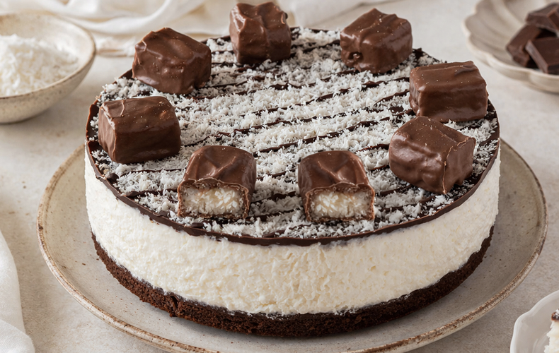 Il Cheesecake Bounty è uno di quei dolci che preparo volentieri quando ho voglia di qualcosa di fresco, goloso e capace di conquistare subito al primo assaggio. Mi piace perché racchiude uno degli abbinamenti più irresistibili di sempre, quello tra cocco e cioccolato, in un dessert cremoso e senza cottura che fa subito venire voglia di affondare il cucchiaino. È perfetto da servire a fine pasto, nelle occasioni speciali o semplicemente quando si vuole portare in tavola un dolce scenografico senza accendere il forno.