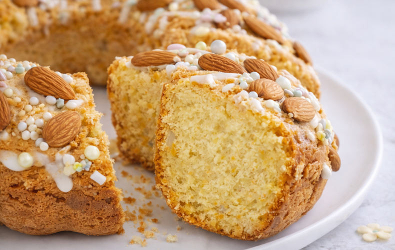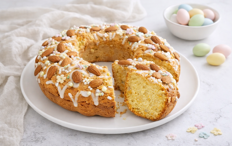 TorteCiambella di Pasqua con Glassa della ColombaScopri la Ciambella di Pasqua con glassa della colomba: soffice, profumata con mandorle e arancia, facile da preparare e perfetta per stupire a Pasqua. Provala subitoRicetta di Andrea Bosetti • 5 Marzo 2026Club delle Ricette è anche su WhatsApp. Non perderti le ricette più nuove e ogni giorno i menu migliori e le idee per cucinare. Iscriviti al Canale Difficoltà MediaPreparazione 20 minutiCottura 35 minutiDosi per 8 persone Guarda le VideoricetteSeguici su YouTube Anelli di Zucchine Seguici su YouTube! Anelli di Zucchine Invia × Facebook Twitter Email Pinterest Salva StampaCiambella di Pasqua Soffice con Glassa Mandorlata, Facile e AromaticaSe siete alla ricerca del perfetto equilibrio tra tradizione e semplicità, la ricetta della ciambella di Pasqua con glassa alle mandorle è il dolce che trasformerà le vostre feste primaverili in un vero e proprio viaggio di sapori inebrianti. Questo dolce pasquale da colazione con glassa è una celebrazione di profumi e consistenze che ricordano la celebre colomba, ma con tutta la praticità di una ciambella soffice e fragrante, perfetta anche per chi si avvicina per la prima volta alle ricette lievitate.Realizzare in casa una ciambella di Pasqua con glassa alle mandorle è davvero semplice: vi basterà una ciotola, una frusta e un pizzico di creatività per vedere nascere un capolavoro dorato arricchito da mandorle, scorza d’arancia fresca e arancia candita. La glassa croccante, stesa generosamente sulla superficie, si prepara in pochi minuti mescolando farina di mandorle, albumi, amido di riso e zucchero, poi viene impreziosita da mandorle intere e da una pioggia di granella di zucchero che rende ogni fetta irresistibile anche alla vista.Non serve essere esperti pasticcieri per scoprire come fare la ciambella di Pasqua soffice: la presenza del lievito di birra conferisce a questa torta di Pasqua una morbidezza ineguagliabile, mentre l’impasto racchiude tutti gli aromi che evocano la magia della festa. Provate a portare a tavola questo dolce da forno per Pasqua con glassa croccante per il pranzo della domenica, una merenda elegante o il brunch del Lunedì dell’Angelo; la sua sofficità si mantiene per giorni, rendendolo ideale anche per la colazione di Pasqua o Pasquetta.Se amate sperimentare in cucina, vi consigliamo di provare anche la Ciambella di Pan Brioche Glassata, i tipici Hot Cross Buns Panini Dolci di Pasqua, oppure le profumate Pardulas Sarde. Per chi preferisce i classici, il Ciambellone Classico della Nonna e il morbido Danubio Dolce vi conquisteranno al primo assaggio.Lasciatevi avvolgere dall’aroma delicato della ciambella soffice con mandorle e zucchero e fate della vostra tavola una festa di gusto e colori: la ricetta della ciambella pasquale con scorza d’arancia, profumata e ricca, saprà regalarvi momenti di autentica gioia, un morso dopo l’altro.Ingredienti per 8 personePer la ciambella:200 g di Farina 00100 g di Farina di Mandorle165 g di Zucchero125 g di Yogurt Bianco70 g di Olio di Semi d'Arachidi o 85 g di burro morbido3 Uova1 bustina di Lievito per Dolci1 cucchiaino di Estratto di Vaniglia1 di Scorza d'Arancia grattugiata, di un'arancia naturale5 gocce di Aroma di Mandorle120 g di Arancia CanditaPer la glassa alle mandorle e la decorazione:40 g di Farina di Mandorle70 g di Zucchero Semolato40 g di Albumi10 g di Amido di Riso o fecola di patate8 gocce di Aroma di Mandorle40 g di Mandorle non sbucciate30 g di Granella di ZuccheroPer lo stampo:10 g di Burro1 cucchiaio di Farina 00Copia Lista IngredientiApri in AppProcedimentoScarica la nostra APP Con meno pubblicità, puoi creare i tuoi ricettari e ricevere nuove ricette ogni giorno. Scarica APP Per preparare la ciambella di Pasqua con glassa della colomba, iniziate dalla glassa: in una ciotolina mescolate la farina di mandorle con lo zucchero semolato e l’amido di riso. Aggiungete gli albumi e mescolate bene, poi unite le 8 gocce di aroma alla mandorla fino a ottenere un composto omogeneo. Coprite con pellicola e riponete in frigo fino al momento dell’utilizzo.Tirate fuori lo yogurt dal frigo e lasciatelo riposare a temperatura ambiente per 15-20 minuti. Nel frattempo lavate e asciugate l’arancia, grattugiate la scorza e tenetela da parte.In una ciotola capiente mescolate con una frusta a mano lo yogurt, le uova, lo zucchero, la scorza d’arancia grattugiata, le 5 gocce di aroma alla mandorla, l’olio di semi di arachide (o il burro morbido) e l’estratto di vaniglia fino a ottenere un composto ben amalgamato.Setacciate la farina 00 insieme al lievito in polvere e aggiungeteli al composto liquido. Unite poi la farina di mandorle e incorporate bene il tutto con la frusta, fino a ottenere un impasto liscio e omogeneo.Aggiungete l’arancia candita tagliata a cubetti piccoli e mescolate. Versate l’impasto nello stampo per ciambella da 24 cm precedentemente imburrato e infarinato.Riprendete la glassa dal frigo: dev’essere soda e compatta. Mescolatela brevemente e trasferitela in un sac à poche con un foro di circa 5 mm (in alternativa usate un sacchetto da freezer con un angolo tagliato). Distribuite la glassa sulla superficie della ciambella facendola scorrere uniformemente, poi decorate con le mandorle intere e la granella di zucchero.Cuocete la ciambella in forno preriscaldato a 175°C per 35-40 minuti, posizionandola nella parte bassa del forno. Verificate la cottura con la prova stecchino; se necessario prolungate di 5 minuti. Se la superficie dovesse scurirsi troppo, coprite con un foglio di alluminio. Sfornate e lasciate intiepidire prima di trasferire sul piatto da portata. Ricordate infine di scaricare la nostra App con contenuti esclusivi e meno pubblicità!Varianti e AlternativePer un impasto più ricco, potete sostituire una parte dei canditi con gocce di cioccolato fondente. In alternativa all’olio di semi di arachide potete usare 85 g di burro molto morbido.ConsigliUtilizzate tutti g