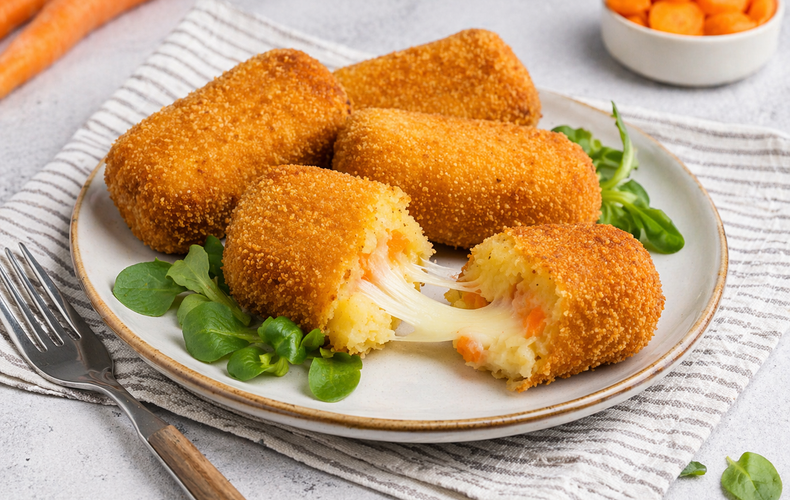 AntipastiCrocchette di Patate e CaroteCrocchette di patate e carote senza glutine ripiene di mozzarella: ricetta facile, veloce e gustosa, fritta o al forno. Perfette per bambini e tutta la famiglia.Ricetta di Andrea Bosetti • 17 Aprile 2026Difficoltà MediaPreparazione 30 minutiCottura 10 minutiDosi per 4 persone Invia × Facebook Twitter Email Pinterest Salva StampaCrocchette di Patate e Carote Croccanti con Cuore Filante, Senza GlutineLe crocchette di patate e carote sono un secondo piatto sfizioso e genuino, perfetto per tutta la famiglia: piacciono ai bambini e conquistano anche i palati più esigenti. Questa ricetta è naturalmente senza glutine (basta usare pangrattato certificato gluten free), il che le rende adatte anche a chi soffre di celiachia o intolleranza al glutine, senza rinunciare al gusto.Nate come reinterpretazione delle classiche crocchette di patate della tradizione italiana, queste versione aggiunge le carote grattugiate finemente, che donano un tocco di dolcezza, un bel colore dorato e un leggero apporto di betacarotene. Al centro, un cuore filante di mozzarella che si scioglie durante la cottura, regalando ad ogni morso una sorpresa cremosa e irresistibile.Le crocchette di patate e carote possono essere cucinate in due modi: fritte in abbondante olio di semi per un risultato croccante e dorato come da tradizione, oppure cotte al forno per una versione più leggera, ideale per chi vuole ridurre i grassi senza sacrificare il sapore. In entrambi i casi, il risultato è un antipasto o secondo piatto che si prepara in pochi minuti e che conquista tutti a tavola.Questa ricetta è anche un ottimo modo per far mangiare le verdure ai bambini in modo creativo, nascondendo le carote nell’impasto. Potete prepararle in anticipo e scaldarle al momento del servizio, oppure congelarle prima della cottura per averle sempre pronte all’occorrenza. Scoprite passo dopo passo come realizzare queste deliziose crocchette di patate e carote con cuore di mozzarella.Ingredienti per 4 personePer l'impasto:400 g di Patate2 Carote100 g di Mozzarella1 Tuorlo50 g di Grana Padano2 cucchiai di Pane Grattugiatoq.b. di Prezzemoloq.b. di Saleq.b. di PepePer la panatura:1 Uovoq.b. di Pane GrattugiatoPer friggere:400 ml di Olio di Semi di GirasoleCopia Lista IngredientiApri in AppProcedimentoPer preparare le Crocchette di Patate e Carote, iniziate lessando le patate con la buccia in una pentola colma d’acqua fredda. Portate a bollore e cuocete per circa 30 minuti, finché saranno morbide. Scolatele e lasciatele intiepidire.Una volta raffreddate, sbucciate le patate e schiacciatele con uno schiacciapatate o un passaverdure fino a ottenere una purea liscia e senza grumi.Aggiungete alla purea il tuorlo, il Grana Padano grattugiato, il prezzemolo tritato, il pangrattato senza glutine, le carote grattugiate finemente, il sale e il pepe. Impastate bene tutti gli ingredienti fino ad ottenere un composto omogeneo e lavorabile.Prelevate una porzione di impasto, appiattitela leggermente sul palmo della mano e sistemate al centro un bastoncino di mozzarella. Chiudete bene l’impasto attorno alla mozzarella e modellate la classica forma allungata della crocchetta. Ripetete con il resto dell’impasto.In una terrina, sbattete l’uovo intero con una forchetta e salatelo leggermente. Passate ogni crocchetta prima nell’uovo sbattuto, poi nel pangrattato senza glutine, facendolo aderire bene su tutti i lati.Per la cottura fritta: scaldate abbondante olio di semi di girasole in una padella profonda. Friggete le crocchette rigirandole continuamente fino a quando risulteranno dorate e croccanti da tutti i lati, circa 8-10 minuti. Scolatele con un mestolo forato e poggiatele su carta assorbente per eliminare l’olio in eccesso.Per la cottura al forno: disponete le crocchette su una teglia rivestita di carta da forno, conditele con un filo d’olio e cuocete a 180°C in forno statico per circa 20 minuti, girandole a metà cottura. Servite le crocchette di patate e carote tiepide. Ricordate infine di scaricare la nostra App con contenuti esclusivi e meno pubblicità!Varianti e AlternativePotete arricchire l’impasto con altre verdure grattugiate come zucchine o zucca. Al posto della mozzarella, provate con un cubetto di provola affumicata o di fontina per un sapore più deciso. Per una versione ancora più leggera, omettete il ripieno di formaggio. Potete anche aromatizzare l’impasto con una punta di noce moscata o paprika dolce.ConsigliAssicuratevi che l’impasto non sia troppo umido: se risulta appiccicoso aggiungete un altro cucchiaio di pangrattato. Per evitare che si aprano durante la frittura, chiudete bene i bordi dell’impasto attorno alla mozzarella e compattate la forma con le mani. Usate mozzarella per pizza (a bassa umidità) al posto della mozzarella fresca per ridurre il rischio che fuoriesca troppo liquido in cottura.ConservazioneLe crocchette di patate e carote si conservano in frigorifero, in un contenitore ermetico, per 1-2 giorni. Per riscaldarle, passatele qualche minuto in forno o in padella antiaderente per ritrovare la croccantezza. È possibile anche congelarle prima della cottura, disponendole su un vassoio, poi trasferendole in sacchetti per alimenti: si conservano fino a 1 mese e si cuociono direttamente da congelate aggiungendo qualche minuto in più.Commenti ★ ★ ★ ★ ★ × 5 / 5 You need to enable JavaScript to vote Annulla risposta Lascia un commento
