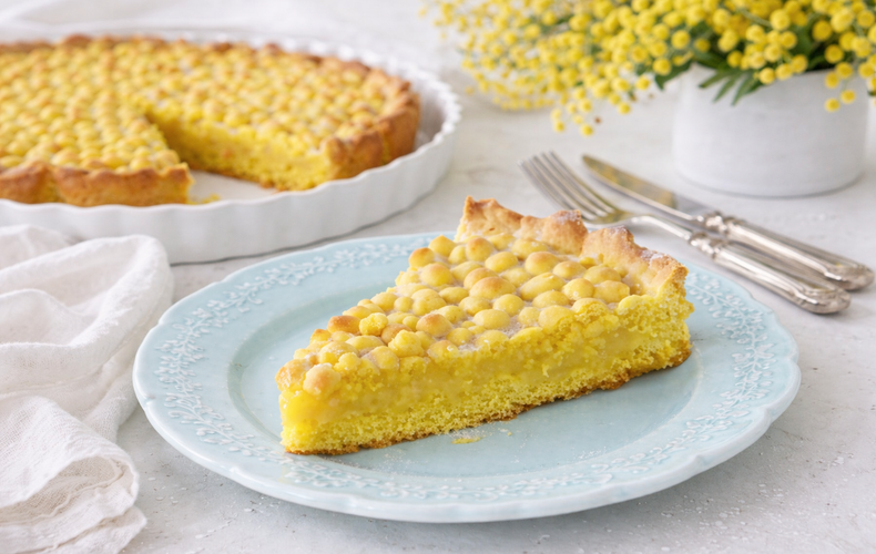 TorteCrostata Mimosa con Crema Pasticcera, GolosissimaScopri la Crostata Mimosa con crema pasticcera: friabile pasta frolla al limone, dolce crema vellutata e decorazione ispirata alla torta mimosa. Prova questa golosa rivisitazione!Ricetta di Andrea Bosetti • 24 Febbraio 2026Club delle Ricette è anche su WhatsApp. Non perderti le ricette più nuove e ogni giorno i menu migliori e le idee per cucinare. Iscriviti al Canale Difficoltà MediaPreparazione 25 minutiCottura 30 minutiDosi per 10 persone Guarda le VideoricetteSeguici su YouTube Anelli di Zucchine Seguici su YouTube! Anelli di Zucchine Invia × Facebook Twitter Email Pinterest Salva StampaCrostata Mimosa con Crema Pasticcera, Facile e Scenografica per l’8 MarzoImmaginate il profumo avvolgente di una pasta frolla al limone appena sfornata, la delicatezza di una crema pasticcera vellutata e la sorpresa di una decorazione che conquista al primo sguardo: questa è la ricetta della crostata mimosa con crema pasticcera, un dessert elegante per feste e momenti speciali. Perfetta come idea per dolce della domenica o come deliziosa attenzione nei confronti delle persone a cui volete bene, questa creazione fonde tradizione e creatività in una preparazione semplice, ma di grande effetto.Per chi si chiede come preparare la crostata mimosa golosa, bastano pochi gesti: una base friabile di pasta frolla arricchita da scorza di limone, un ripieno cremoso realizzato con la classica crema all’uovo lavorata a regola d’arte e, per finire, una decorazione unica con piccole sfere di pan di Spagna soffice dalla tipica tonalità gialla, perfette per ricordare l’inconfondibile fiore. Se avete già sperimentato una Crostata al Kiwi o la Crostata Furba alla Crema e Frutta, amerete questa versione inedita: la torta mimosa in versione crostata racconta la dolcezza con un tocco di originalità.È la ricetta golosa per occasioni speciali che dona luce alla tavola: la pasta frolla con base friabile e l’aroma solare del limone la rendono irresistibile, mentre la crema pasticcera facile e raffinata regala una consistenza avvolgente ad ogni fetta. Saper come fare la crema pasticcera vellutata è il segreto che trasforma l’assaggio in puro piacere, soprattutto quando servita come protagonista o accanto a varianti amate, come la Crostata di Ricotta, la Crostata di Ricotta e Cioccolato oppure la profumata Crostata con Curd di Limone e Meringa.Lasciatevi tentare da questa crostata con crema e pan di spagna soffice: porterete in tavola una festa di sapori e colori pronta a sorprendere e conquistare tutti i vostri ospiti.Ingredienti per 10 personePer la pasta frolla:250 g di Farina 0080 g di Zucchero100 g di Burro1 di Uovo1 di Tuorlo½ bustina di Lievito per Dolci1 Limone scorza grattugiataq.b. di Colorante Alimentare gialloPer la crema pasticcera:400 g di Latte150 g di Zucchero50 g di Fecola di Patate4 Tuorli1 Limone bucciaCopia Lista IngredientiApri in AppProcedimentoScarica la nostra APP Con meno pubblicità, puoi creare i tuoi ricettari e ricevere nuove ricette ogni giorno. Scarica APP Per preparare la Crostata Mimosa con crema pasticcera, iniziate dalla pasta frolla: mescolate il burro morbido insieme allo zucchero fino a ottenere un composto cremoso.Unite l’uovo intero e il tuorlo al composto di burro e zucchero, mescolando fino a completo assorbimento.Aggiungete la farina, il lievito in polvere, la scorza grattugiata del limone e il colorante alimentare giallo. Impastate rapidamente fino a ottenere un panetto liscio e omogeneo.Avvolgete il panetto di frolla nella pellicola trasparente e lasciatelo riposare in frigorifero per almeno 30 minuti.Nel frattempo preparate la crema pasticcera: scaldate il latte in un pentolino a fiamma media insieme alla buccia di limone intera.In una ciotola a parte, sbattete i tuorli con lo zucchero fino a ottenere un composto chiaro, poi incorporate la fecola di patate setacciata.Versate il latte caldo a filo sul composto di tuorli, mescolando continuamente con una frusta, poi riportate tutto sul fuoco e cuocete a fiamma bassa, sempre mescolando, finché la crema non si sarà addensata.Rimuovete la buccia di limone dalla crema, trasferitela in una ciotola, copritela con pellicola a contatto e lasciatela riposare per almeno 30 minuti.Riprendete la pasta frolla dal frigorifero e dividetela in due panetti di dimensioni diverse.Con il panetto più grande, stendete la frolla direttamente nella teglia da 24 cm con le mani, alzando bene i bordi per formare un contenitore.Versate la crema pasticcera raffreddata sulla base di frolla livellandola uniformemente.Con il secondo panetto di frolla, formate tante piccole palline (tenetele piccole perché in cottura si gonfiano) e disponetele sulla superficie coprendo tutta la crema.Infornate in forno ventilato preriscaldato a 180°C per circa 30 minuti. A metà cottura, se necessario, coprite con un foglio di carta alluminio per evitare che la superficie si colori troppo.Quando la crostata sarà leggermente dorata in superficie, sfornatela e lasciatela raffreddare completamente. Prima di servire, spolverate con abbondante zucchero a velo. Ricordate infine di scaricare la nostra App con contenuti esclusivi e meno pubblicità!Varianti e AlternativePotete arricchire la crema pasticcera con un cucchiaio di liquore all’arancia o al limoncello per una versione più profumata. In alternativa alla crema pasticcera classica, potete preparare una crema diplomatica aggiungendo alla base 100 g di panna montata, per una farcitura più leggera e ariosa. Per una versione senza glutine, sostituite la farina con un mix di farine senza glutine adatto alla pasticceria.ConsigliPer un colore giallo intenso e uniforme, usate un colorante in gel piuttosto che liquido: darà un risultato più vivace senza alterare la consistenza dell’impasto. Assicuratevi che il burro sia a temperatura ambiente per lavorare la frolla più facilmente. Se la crema dovesse risultare troppo liquida, aggiungete un cucchiaio