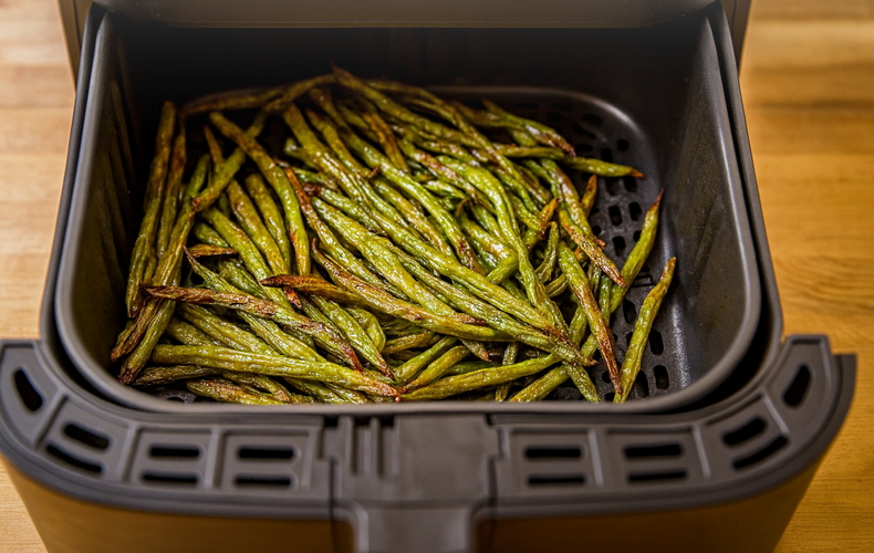 5. Cuocete i fagiolini per 8-10 minuti, scuotendo il cestello a metà cottura per garantire una doratura uniforme. I fagiolini saranno pronti quando risulteranno leggermente dorati all’esterno e teneri all’interno.