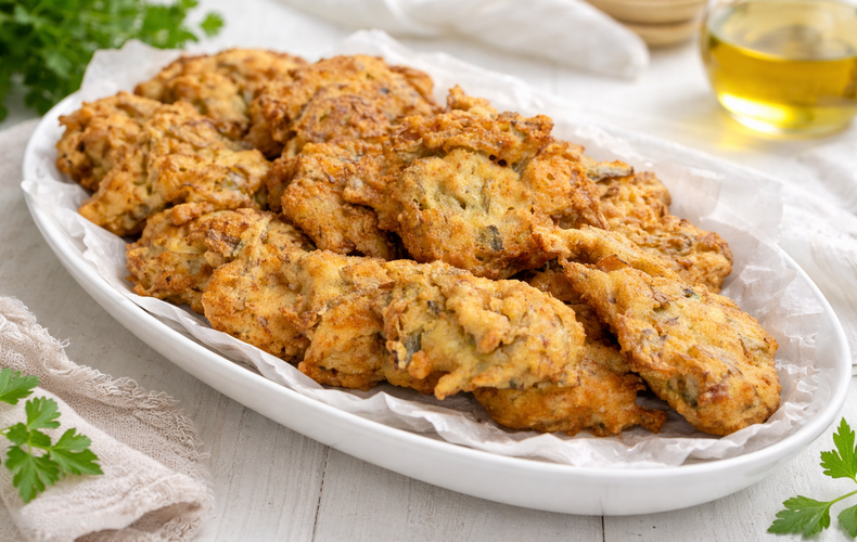 ContorniFrittelle di CarciofiScopri le Frittelle di Carciofi, croccanti fuori e morbide dentro, con carciofi freschi e formaggio grattugiato. Porta in tavola tradizione e gusto irresistibile!Ricetta di Andrea Bosetti • 20 Gennaio 2026Club delle Ricette è anche su WhatsApp. Non perderti le ricette più nuove e ogni giorno i menu migliori e le idee per cucinare. Iscriviti al Canale Difficoltà MediaPreparazione 10 minutiCottura 15 minutiDosi per 20 frittelle Guarda le VideoricetteSeguici su YouTube Anelli di Zucchine Seguici su YouTube! Anelli di Zucchine Invia × Facebook Twitter Email Pinterest Salva StampaFrittelle di Carciofi Croccanti e Morbide, Ricetta Siciliana FacileLe frittelle di carciofi croccanti sono un invito irresistibile a riscoprire il piacere di un antipasto con i carciofi fritti semplice ma ricco di gusto, perfetto per qualunque occasione di convivialità. Se vi chiedete come preparare le frittelle di carciofi perfette, partite dalla freschezza e dalla bontà degli ingredienti: vi serviranno carciofi teneri, uova, farina, pangrattato e un po’ di formaggio grattugiato, senza necessità di utilizzare il lievito. L’impasto delle frittelle di carciofi senza lievito si prepara velocemente e permette di ottenere una consistenza morbida ma avvolta da una croccantezza dorata che conquista al primo morso. Innanzitutto pulite i carciofi, eliminando ogni parte dura, e sbollentateli con cura in acqua e limone affinché mantengano il colore e la delicatezza. Dopo averli lasciati raffreddare, tagliateli grossolanamente e amalgamateli in una pastella generosa a base di carciofi e farina, insaporita con formaggio e arricchita da un velo di pangrattato per la crosticina perfetta.Queste frittelle di carciofi facili e veloci sono ideali per essere servite appena preparate, calde e fragranti, sia come frittelle di carciofi per aperitivo, sia come elegante contorno a secondi di carne o pesce, oppure come sfizioso piatto unico da condividere in famiglia. La ricetta delle frittelle di carciofi si presta sia all’uso di carciofi freschi sia surgelati, rendendola sempre accessibile e pronta in ogni stagione. Potete anche personalizzarle aggiungendo erbe aromatiche oppure provare altre sfiziosità come le Tartellette ai Carciofi o le Polpette di Carciofi Filanti. Per esplorare gusti diversi, provate la Parmigiana di Carciofi oppure, se amate le verdure in pastella, le Frittelle di Zucca Salate sapranno conquistarvi.Portate in tavola le frittelle di carciofi in padella, lasciatevi avvolgere dal loro aroma invitante e dalla loro consistenza unica: con questa ricetta delle frittelle di carciofi morbide donerete ai vostri ospiti tutto il calore genuino della cucina di casa, tra tradizione e goloso comfort food.Ingredienti per 20 frittelle200 g di Carciofi cotti e bolliti, ben sgocciolati2 di Uova50 g di Farina 0030 g di Parmigiano Reggiano1 cucchiaio di Pane Grattugiatoq.b. di Sale1 pizzico di Pepe Neroq.b. di Olio per FriggereCopia Lista IngredientiApri in AppProcedimentoScarica la nostra APP Con meno pubblicità, puoi creare i tuoi ricettari e ricevere nuove ricette ogni giorno. Scarica APP Per preparare le frittelle di carciofi iniziate dalla pulizia dei carciofi lessati: tagliateli prima a fette sottili e poi a pezzi grossolani. Se alcune foglie risultano difficili da tagliare, eliminatele perché più dure e fibrose, così da evitare che dopo la cottura risultino fastidiose al palato.Raccogliete i carciofi tagliati in una ciotola capiente e unitevi le uova, il sale, il pepe nero, il formaggio grattugiato, la farina e il pangrattato.Mescolate energicamente tutti gli ingredienti con una forchetta o un cucchiaio fino a ottenere un impasto omogeneo ma pastoso, assicurandovi che i carciofi siano ben distribuiti nella pastella.Scaldate abbondante olio di semi in una padella capiente portandolo alla temperatura giusta per la frittura. Prelevate circa un cucchiaio di impasto e tuffatelo delicatamente nell’olio caldo.Schiacciate leggermente ogni frittella con il dorso del cucchiaio per renderla più sottile e favorire una cottura uniforme. Cuocete le frittelle da entrambi i lati girandole con delicatezza fino a quando risultano ben dorate.Man mano che le frittelle sono pronte, sollevatele con una schiumarola e fatele sgocciolare su carta assorbente da cucina per eliminare l’olio in eccesso.Servite le frittelle di carciofi calde appena fritte per apprezzarne la croccantezza, oppure gustatele tiepide o fredde come preferite. Ricordate infine di scaricare la nostra App con contenuti esclusivi e meno pubblicità!Varianti e AlternativePotete arricchire l’impasto con erbe aromatiche fresche tritate come prezzemolo o menta per un tocco di freschezza. Per una versione ancora più saporita aggiungete alla pastella aglio tritato finemente o cipollotto. Se preferite un gusto più deciso sostituite il parmigiano con pecorino stagionato. Potete anche aggiungere all’impasto dei piselli lessati o delle fave per creare una frittella mista che richiama la tradizionale frittedda siciliana.ConsigliSe utilizzate carciofi freschi, ricordatevi di lessarli in acqua acidulata con succo di limone per mantenerli chiari e delicati. I carciofi surgelati rappresentano un’ottima alternativa pratica che rende la ricetta ancora più veloce. Potete preparare l’impasto qualche ora prima e conservarlo in frigorifero coperto con pellicola. Per una versione più leggera potete cuocere le frittelle in forno ventilato a 190°C su una teglia rivestita di carta forno, girandole a metà cottura, anche se la frittura in padella garantisce il miglior risultato in termini di croccantezza.ConservazioneLe frittelle di carciofi si conservano in frigorifero in un contenitore ermetico per 2-3 giorni. Prima di consumarle potete scaldarle brevemente in forno o in padella per rigenerare la croccantezza. Non sono indicate per il congelamento in quanto perderebbero la loro caratteristica consistenza croccante.Commenti ★ ★ ★ ★ ★ 