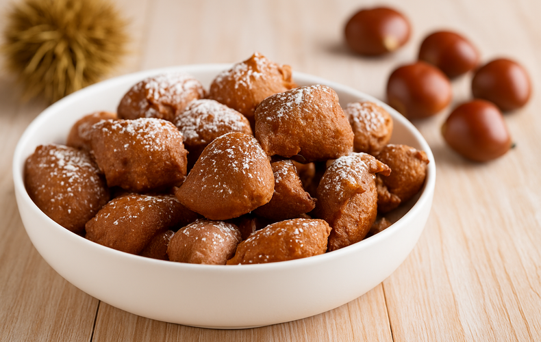 Piccola PasticceriaFrittelle di CastagneScopri le Frittelle di Castagne: dolcetti irresistibili senza glutine, preparati con farina di castagne, acqua e un tocco di rum. Provale, soffici dentro e croccanti fuori!Ricetta di Giorgio Loda • 12 Novembre 2025Club delle Ricette è anche su WhatsApp. Non perderti le ricette più nuove e ogni giorno i menu migliori e le idee per cucinare. Iscriviti al Canale Difficoltà FacilePreparazione 10 minutiCottura 10 minutiDosi per 4 persone Guarda le VideoricetteSeguici su YouTube Anelli di Zucchine Seguici su YouTube! Anelli di Zucchine Invia × Facebook Twitter Email Pinterest Salva StampaFrittelle di Castagne Croccanti e Soffici Senza Glutine, Pronte in 10 Minuti Avete mai desiderato portare in tavola un dolce che celebra davvero il sapore autentico dell’autunno? Le frittelle di castagne sono il perfetto incontro tra semplicità e gusto, ideali quando avete voglia di uno snack rustico dolce o di un fine pasto alternativo, da gustare caldo e appena fritto. Affidatevi a questa ricetta frittelle dolci che, con pochi passaggi e soli tre ingredienti – farina di castagne, acqua e un tocco di rum – vi regalerà delle frittelle morbide senza glutine, dalla crosticina irresistibilmente dorata e l’interno sofficissimo. Perfette per coccolarsi durante una giornata piovosa o per sorprendere amici e famiglia con un dessert da condividere vicino al camino, le frittelle diventano subito le protagoniste di ogni merenda autunnale. Preparare questo dolce tradizionale è davvero alla portata di tutti: niente lievitazione lunga, niente impasti complicati, solo il piacere di creare con le mani un dessert genuino che profuma di bosco. Le frittelle di castagne sono pensate anche per chi segue una ricetta senza uova e per chi cerca alternative classiche ai comuni dolci cotti in padella, offrendo così un’esperienza nuova e irresistibile anche agli amici con intolleranze. Il loro gusto delicato di castagna, reso ancora più avvolgente dal rum, si sposa magnificamente con un semplice spolvero di zucchero a velo, ma potete anche accompagnarle a una crema leggera per un effetto wow. Se amate preparare dolci con castagne, vi consigliamo di provare anche i profumatissimi Castagnotti, Biscotti di Castagne e Cioccolato, il raffinato Budino di Castagne oppure, per un tocco goloso, le Tortine Mont Blanc. E se vi incuriosisce esplorare ancora, lasciatevi tentare dalle Tortine di Castagne o dalla ricchissima Torta al Cioccolato e Marroni, veri must tra chi ama la farina di castagne dessert.Tra le altre Ricette con le Castagne vi consigliamo di provareCrema di Castagne al CacaoTortine di CastagneTorta di CastagneBudino di Castagne e CioccolatoIngredienti per 4 persone10 cucchiai di Farina di Castagne1 bicchiere di Acqua1/2 bicchierino di Rumq.b. di Olio per Friggereq.b. di Zucchero a VeloCopia Lista IngredientiApri in AppProcedimentoScarica la nostra APP Con meno pubblicità, puoi creare i tuoi ricettari e ricevere nuove ricette ogni giorno. Scarica APP Per preparare le Frittelle di Castagne mettete la farina in una ciotola insieme a un cucchiaio di zucchero a velo. Unite quindi il rum e l’acqua a filo, mescolando con una frusta in modo da ottenere una pastella liscia e morbida.Scaldate una padella, meglio se di ferro, con abbondante olio di semi. Le frittelle infatti dovranno immergersi completamente per gonfiarsi.Quando l’olio avrà raggiunto i 170°-180°C misurabili con un termometro da cucina, lasciate cadere delle cucchiaiate di impasto e friggetele fino a che non saranno croccanti e dorate.Scolatele e trasferitele su un foglio di carta da cucina per rimuovere l’unto in eccesso prima di servirle completando con una spolverata di zucchero a velo. Ricordate infine di scaricare la nostra App con contenuti esclusivi e meno pubblicità!Varianti e AlternativeLe Frittelle di Castagne possono essere arricchite e addolcite aggiungendo all’impasto dell’Uvetta reidratata.ConsigliVi consigliamo di preparare le Frittelle di Castagne all’ultimo momento e servirle ben calde.ConservazionePer quanto detto sopra, le Frittelle di Castagne non si prestano a essere conservate. Tuttavia, se vi dovessero avanzare, riponetele in un sacchetto di carta per alimenti per massimo un paio di giorni.Commenti ★ ★ ★ ★ ★ × 4 / 5 You need to enable JavaScript to vote Annulla risposta Lascia un commento