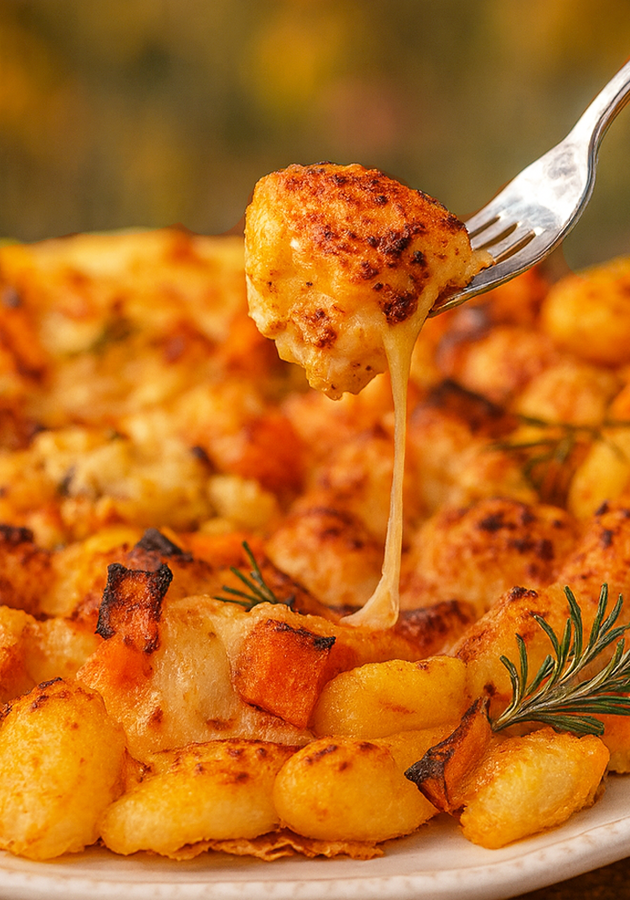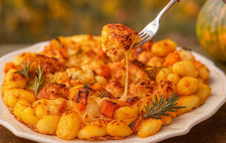 Primi PiattiGnocchi con Zucca e Fontina GratinatiRicetta degli gnocchi con zucca e fontina gratinati, un primo piatto autunnale facile e veloce da preparare, ideale per pranzi in famiglia. Cremosi, saporiti e arricchiti da besciamella fatta in casa.Ricetta di Giorgio Loda • 17 Novembre 2025Club delle Ricette è anche su WhatsApp. Non perderti le ricette più nuove e ogni giorno i menu migliori e le idee per cucinare. Iscriviti al Canale Difficoltà MediaPreparazione 20 minutiCottura 25 minutiDosi per 6 persone Guarda le VideoricetteSeguici su YouTube Anelli di Zucchine Seguici su YouTube! Anelli di Zucchine Invia × Facebook Twitter Email Pinterest Salva StampaGli gnocchi con zucca e fontina gratinati rappresentano un primo piatto tipico dell’autunno, ricco di sapori caldi e avvolgenti. Questo piatto è ideale per pranzi in famiglia o con amici, grazie alla sua facilità di preparazione e al gusto irresistibile. La zucca, dolce e morbida, si combina perfettamente con la fontina filante e la besciamella cremosa, creando un equilibrio piacevole di consistenze e sapori. Potete prepararli anche in anticipo, rendendoli un’opzione pratica per occasioni speciali o cene informali. È una ricetta economica ma di grande effetto, perfetta per chi ama i piatti tradizionali con un tocco di comfort food. Provatela per lasciarvi conquistare dall’essenza autentica dell’autunno in tavola.Ingredienti per 6 personePer la base e la zucca:400 g di Zucca a cubetti1 kg di Gnocchi di PatatePer la besciamella:30 g di Burro30 g di Farina 00400 ml di Latteq.b. di SalePer la gratinatura:30 g di Parmigiano Reggiano150 g di Fontina a cubettiq.b. di Olio Extravergine d'Olivaq.b. di Pepeq.b. di Sale1 rametto di RosmarinoCopia Lista IngredientiApri in AppProcedimentoScarica la nostra APP Con meno pubblicità, puoi creare i tuoi ricettari e ricevere nuove ricette ogni giorno. Scarica APP Per preparare gli gnocchi con zucca e fontina gratinati, iniziate tagliando la zucca a cubetti e disponetela su una teglia rivestita con carta forno. Condite con olio d’oliva, sale, pepe e un rametto di rosmarino e cuocete in forno a 180°C o in friggitrice ad aria per circa 15-20 minuti finché la zucca diventa morbida.Una volta cotta, dividete la zucca: metà schiacciatela con una forchetta fino a ottenere una purea, potete anche utilizzare un frullatore per una crema più liscia. Aggiungete la besciamella e qualche cucchiaio di latte per rendere la crema fluida, mescolando bene.Preparate la besciamella partendo da burro e farina: sciogliete 30 g di burro in un pentolino, aggiungete 30 g di farina mescolando per creare un roux, quindi versate 400 ml di latte caldo poco per volta continuando a mescolare finché la salsa si addensa.Nel frattempo lessate gli gnocchi in acqua salata. Scolateli appena vengono a galla e trasferiteli in una pirofila.Mescolate gli gnocchi con la crema di zucca e besciamella, unite i dadini di fontina e la zucca rimasta. Cospargete con parmigiano grattugiato, una grattata di pepe e qualche aghi di rosmarino.Gratinate in forno caldo a 200°C con funzione grill per 8-10 minuti oppure in friggitrice ad aria a 220°C modalità grill per circa 8 minuti.Sfornate e servite gli gnocchi caldi, gustando un piatto dal sapore avvolgente e tipicamente autunnale. Ricordate infine di scaricare la nostra App con contenuti esclusivi e meno pubblicità!Varianti e AlternativePotete sostituire la fontina con un altro formaggio a pasta morbida come il taleggio o l’asiago. Per una versione vegetariana senza lattosio, optate per una besciamella vegana e un formaggio vegetale.ConsigliPer un sapore ancora più ricco, potete aggiungere una noce di burro sulla superficie prima della gratinatura. Se preferite una versione più cremosa, aumentate leggermente la quantità di besciamella o aggiungete un po’ di panna fresca.ConservazioneGli gnocchi con zucca e fontina si conservano in frigorifero coperti da pellicola per un massimo di 1-2 giorni. Prima di servirli, riscaldateli in forno o in friggitrice ad aria per mantenere la gratinatura croccante.Commenti ★ ★ ★ ★ ★ × 5 / 5 You need to enable JavaScript to vote Annulla risposta Lascia un commento