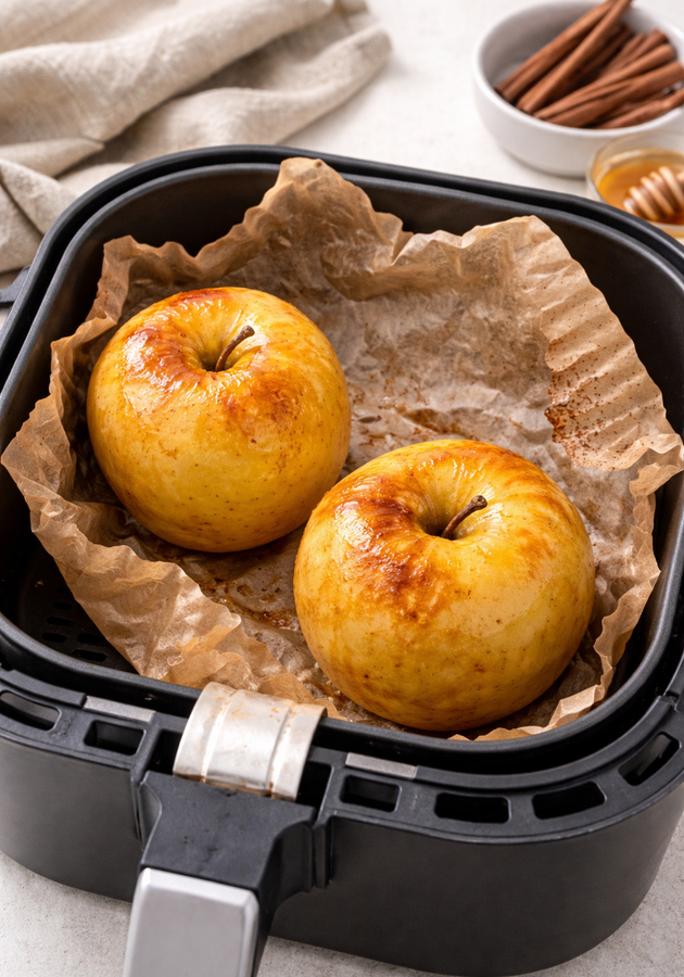 DolciMele Cotte nella Friggitrice ad AriaLe Mele Cotte in Friggitrice ad Aria sono una gustosa ricetta con la friggitrice ad aria che vi permetterà di ottenere delle perfette e gustose mele cotte in pochi minuti e ottime come dolce light o come spuntino di metà giornata.Ricetta di Andrea Bosetti • 11 Marzo 2026Difficoltà FacilePreparazione 5 minutiCottura 20 minutiDosi per 2 persone Invia × Facebook Twitter Email Pinterest Salva StampaLe Mele Cotte nella Friggitrice ad Aria sono un gustoso dolce light che si prepara in pochi minuti e che potete personalizzare a piacere con le spezie che più amate come cannella, anice o il più classico zucchero di canna o semolato.La Ricetta delle Mele Cotte in Friggitrice ad Aria vi permetterà di preparare delle gustose Mele Cotte in pochi minuti e risparmiando anche elettricità grazie alla velocità di cottura che garantisce la Friggitrice ad Aria. Visto il modo in cui la Friggitrice ad Aria apporta calore agli alimenti risulteranno molto simili alla tradizionali Mele Cotte al Forno. Se, come accade per le Mele al Forno volete conservare il gustoso sughetto che si crea durante la cottura vi consigliamo di posizionare sul fondo del cestello una piccola teglia circolare usa e getta di alluminio. Si allungherà di qualche minuto il tempo di cottura ma avrete così un sugheetto dal retrogusto di caramello che ben si accompagna alle Mele Cotte.Non è richiesta una tipologia specifica di Mela, potete utilizzare la varietà che più vi aggrada anche se la migliore, che si sentiamo di consigliarvi è la Granny Smith. Molto succosa e ottima per la cottura.Ingredienti per 2 persone4 Meleq.b. di Zucchero di CannaCopia Lista IngredientiApri in AppProcedimentoPer preparare le Mele Cotte in Friggitrice ad Aria per prima cosa lavate con cura le vostre mele e togliete il torsolo.Mettete in foglio di alluminio tra il cassetto della friggitrice ad aria e il cestello così che possa aiutavi poi nella pulizia e disponete nel cestello le mele.Spolverizzate le mele con un po’ di zucchero e fate cuocere nella friggitrice ad aria preriscaldata a 180°C per circa 20 minuti.Una volta cotte togliete dal cestello le vostre mele e servitele a piacere spolverizzare con un po’ di zucchero a velo. Ricordate infine di scaricare la nostra App con contenuti esclusivi e meno pubblicità!Varianti e AlternativeSe volete potete arricchire le vostre Mele Cotte in Friggitrice ad Aria inserendo nella cavità che avrete creato togliendo il picciolo un po’ di frutta secca tritata grossolanamente e un cucchiaino di miele. A piacere potete anche optare per una spolverata di cannella in polvere.Altre Ricette per le Mele Cotte:Mele Cotte al FornoMele Cotte al MicroondeMele Cotte in PadellaMele Ripiene al FornoMele al Forno Ripiene con Frutta Secca e CremaPurea di Mele CotteConsigliSe volete potete anche evitare di togliere il torsolo, vi basterà mettere un po’ di zucchero, in questo caso semolato, sulla parte superiore delle mele (dove c’è il picciolo)ConservazioneLe Mele Cotte in Friggitrice ad Aria si conservano in frigorifero per 1-2 giorni senza nessun problema.Commenti ★ ★ ★ ★ ★ × 4.8 / 5 You need to enable JavaScript to vote Annulla risposta Lascia un commento angelo.68.ottobre 6 Novembre 2024 a 16:03 Lo zucchero va messo inumidito? Perché l’aria creata dalla friggitrice lo farebbe volare via. Accedi per rispondere Il Cuciniere 7 Novembre 2024 a 16:03 Togliendo il torsolo buona parte dello zucchero finirà all’interno della mela 😉 puoi non togliere completamente il torsolo (lasciando un po’ di mela sul fondo) per raccogliere meglio nella mela zucchero ed eventuali spezie. v.luigiedoard 12 Maggio 2024 a 12:20 Si può usare il forno tradizionale? Grazie Accedi per rispondere Il Cuciniere 13 Maggio 2024 a 10:17 Certo che sì 😋 segui la ricetta dedicata mele cotte al forno