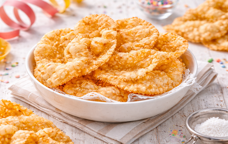 Piccola PasticceriaMeraviglie di Iginio MassariScopri le Meraviglie di Iginio Massari: sfoglia sottile con panna, scorza di limone e un tocco di rum, croccanti e dorate, perfette per un Carnevale indimenticabile!Ricetta di Giorgio Loda • 27 Gennaio 2026Club delle Ricette è anche su WhatsApp. Non perderti le ricette più nuove e ogni giorno i menu migliori e le idee per cucinare. Iscriviti al Canale Difficoltà MediaPreparazione 40 minutiCottura 10 minutiDosi per Circa 50 pezzi Guarda le VideoricetteSeguici su YouTube Anelli di Zucchine Seguici su YouTube! Anelli di Zucchine Invia × Facebook Twitter Email Pinterest Salva StampaMeraviglie di Iginio Massari Friabili e Ricche, Perfette per CarnevaleCercate un dessert che porti in tavola la magia della festa e sorprenda anche i palati più golosi? La ricetta delle meraviglie di Iginio Massari è ciò che fa per voi: friabili nuvole dorate, arricchite con panna e profumate da scorza d’arancia e limone, capaci di trasformare la semplice merenda di carnevale fatta in casa in un’esperienza da pasticceria. Questi dolci fritti con scorza d’arancia nascono dalla sapiente lavorazione di un impasto a base di burro e farina, reso unico dalla presenza di uova, panna fresca e un tocco di rum, per una fragranza che scalda il cuore già dal primo morso.Seguendo i trucchi della pasticceria di Iginio Massari passo passo, scoprite come preparare le meraviglie dolci perfette: lavorate a lungo l’impasto fino a renderlo liscio e vellutato, lasciatelo riposare in frigorifero per esaltarne la friabilità e stendetelo sottilissimo con la macchina della pasta. Ogni disco, leggerissimo e ricco di bollicine, regala un risultato croccante e leggero, perfetto da guarnire generosamente con zucchero a velo per un dessert di sicuro effetto.L’olio caldo – portato alla temperatura ideale, intorno ai 176°C – è fondamentale per ottenere dolci facili da friggere che restano chiari, asciutti e pieni di quelle caratteristiche bolle che rendono le meraviglie irresistibili sia agli occhi sia al palato. Se volete dare una forma più originale, stringete i dischi al centro con due bastoncini durante la frittura e lasciate che assumano pieghe decorative, in pochi istanti saranno pronte per essere gustate.Queste meraviglie dolci fragranti per feste sapranno conquistare grandi e piccini, ideali per accompagnare buffet, merende o un tè durante i giorni di festa. Scoprite altre idee golose per Carnevale come le Chiacchiere al Forno, le Zeppole di Carnevale, le Tagliatelle Dolci di Carnevale, i Crostoli alla Marmellata o le colorate Stelle Filanti Dolci.Ingredienti per Circa 50 pezzi500 g farine di Farina 00150 g di Uova20 g di Tuorli40 g di Zucchero5 g di Sale25 ml di Panna50 ml di Rum1 di Scorza di Limone grattugiataq.b. di Olio di Semi per friggereq.b. di Zucchero a Velo per servireCopia Lista IngredientiApri in AppProcedimentoScarica la nostra APP Con meno pubblicità, puoi creare i tuoi ricettari e ricevere nuove ricette ogni giorno. Scarica APP Per preparare le meraviglie di Iginio Massari, mettete in planetaria farina, uova, tuorli, zucchero, sale, panna, rum e scorza di limone, quindi lavorate fino a ottenere un impasto liscio e omogeneo. [page:0]Avvolgete l’impasto nella pellicola e lasciatelo riposare in frigorifero per circa 1 ora. [page:0]Stendete l’impasto con la macchina della pasta, passando più volte fino all’ultimo spessore per ottenere una sfoglia molto sottile. [page:0]Ritagliate dei dischi con una rondella liscia o dentellata (potete usare anche un piattino da caffè rovesciato come guida). [page:0]Scaldate l’olio e portatelo a circa 176 °C, poi immergete pochi dischi alla volta. [page:0]Durante la frittura, se non avete l’attrezzo dedicato, modellate i dischi con due bastoncini di legno: appoggiateli al centro creando idealmente un cerchio di 6–7 cm e stringete formando pieghe, così da dare struttura al disco. [page:0]Cuocete velocemente, circa 6–8 secondi per lato, giusto il tempo di dorare. [page:0]Scolate le meraviglie in verticale con una schiumarola e trasferitele su carta assorbente per qualche minuto. [page:0]Disponetele su un vassoio e spolverizzate con zucchero a velo prima di servire. [page:0] Ricordate infine di scaricare la nostra App con contenuti esclusivi e meno pubblicità!Varianti e AlternativePotete aromatizzare sostituendo la scorza di limone con arancia oppure sostituendo il rum con un altro distillato delicato; la forma può restare a disco semplice oppure modellata al centro con i bastoncini come indicato. [page:0]ConsigliTirate la sfoglia sottilissima e friggete a temperatura stabile (circa 176 °C) per ottenere bolle e leggerezza; friggete pochi pezzi per volta per non abbassare l’olio. [page:0]ConservazioneConservatele in un contenitore di latta o ermetico, in luogo fresco e asciutto, per 1–2 giorni: tendono a perdere croccantezza con l’umidità.Commenti ★ ★ ★ ★ ★ × 5 / 5 You need to enable JavaScript to vote Annulla risposta Lascia un commento