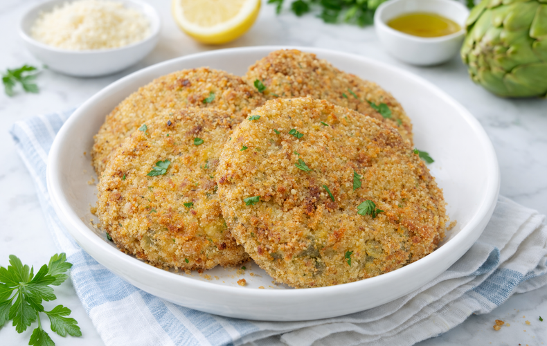 Per un aroma più fresco e primaverile, aggiungete menta fresca tritata o basilico all’impasto insieme al prezzemolo. Se volete una versione senza glutine, utilizzate pangrattato gluten free sia nell’impasto che per la panatura. Per un gusto più deciso e speziato, incorporate curcuma, paprika dolce o affumicata, oppure un pizzico di noce moscata. Se non amate i carciofi, sostituiteli con funghi champignon o porcini trifolati. Per una versione più ricca, aggiungete speck a cubetti, macinato di carne bovina o di pollo all’impasto. Assicuratevi che le patate siano ben asciutte e schiacciate ancora calde per evitare grumi. L’impasto deve risultare compatto ma non troppo asciutto: regolatevi con il pangrattato. Se utilizzate carciofi surgelati, scolateli bene dall’acqua e tamponateli con carta assorbente prima di tritarli.