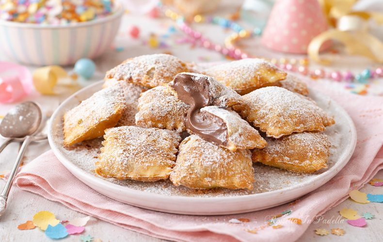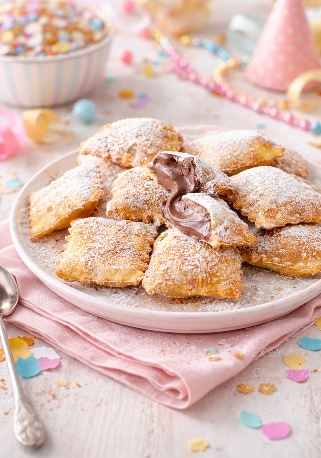 TorteRavioli di Carnevale Fritti con la NutellaScopri i Ravioli di Carnevale Fritti con la Nutella: impasto alla ricotta, cuore cremoso di Nutella e irresistibile croccantezza. Provali e lasciati conquistare!Ricetta di Andrea Bosetti • 20 Gennaio 2026Club delle Ricette è anche su WhatsApp. Non perderti le ricette più nuove e ogni giorno i menu migliori e le idee per cucinare. Iscriviti al Canale Difficoltà MediaPreparazione 20 minutiCottura 15 minutiDosi per circa 15 ravioli Guarda le VideoricetteSeguici su YouTube Anelli di Zucchine Seguici su YouTube! Anelli di Zucchine Invia × Facebook Twitter Email Pinterest Salva StampaRavioli di Carnevale Fritti con Nutella Cremosa, Facili e VelociQuando l’atmosfera del Carnevale si accende, ecco che arriva il momento perfetto per mettere le mani in pasta e preparare una vera coccola: ricetta dei ravioli di Carnevale fritti con un irresistibile cuore di Nutella. Questi ravioli dolci ripieni di Nutella sono la tentazione a cui nessuno riesce a dire di no: un guscio esterno croccante e dorato accoglie una crema al cioccolato che resta morbida e avvolgente anche dopo la cottura. Grazie a un impasto leggero e soffice, arricchito dalla ricotta, potrete preparare in casa dei ravioli dolci con la Nutella che conquisteranno al primo morso!Non lasciatevi ingannare dall’aspetto: la preparazione è più semplice di quanto sembri e con pochi ingredienti e il giusto accorgimento – bastano dei piccoli ciuffi di Nutella precedentemente congelati – otterrete dolci di Carnevale facili e veloci, perfetti anche per chi vuole cimentarsi per la prima volta con la frittura. L’impasto per ravioli fritti dolci si lavora in pochi minuti e non richiede particolari abilità, ma il risultato sarà sorprendente: ravioli fritti soffici e golosi, ideali per rallegrare feste, merende tra amici o buffet di compleanno.Questa ricetta dei ravioli dolci fritti rappresenta tutto il piacere dei dolci ripieni di crema al cioccolato, perfetti non solo a Carnevale ma ogni volta che volete regalare un momento di dolcezza fatta in casa. E se amate variare, non perdetevi altre golosità come i Ravioli Dolci di Carnevale con Nutella al Forno per una versione più leggera, oppure i soffici Bombe alla Crema, le classiche Zeppole Sarde, i croccanti Crostoli o ancora le Frittelle di Carnevale.Chiudete gli occhi e immaginate il profumo della frittura che invade la cucina, mentre la vostra voglia di dolci di Carnevale fatti in casa si trasforma in una festa di sapori e tradizione. Siete pronti a scoprire come fare i ravioli fritti ripieni da condividere con chi amate?Ingredienti per circa 15 ravioliPer l'impasto:200 g di Farina 00150 g di Ricotta30 g di ZuccheroPer la farcitura:150 g di NutellaPer friggere e decorare:q.b. di Olio di Arachidi per Friggereq.b. di Zucchero a Velo1 pizzico di Cannella in polvereCopia Lista IngredientiApri in AppProcedimentoScarica la nostra APP Con meno pubblicità, puoi creare i tuoi ricettari e ricevere nuove ricette ogni giorno. Scarica APP Per preparare i ravioli fritti con la Nutella, iniziate preparando l’impasto: in una ciotola capiente versate la farina setacciata e lo zucchero, mescolate brevemente per amalgamare i due ingredienti.Aggiungete la ricotta e iniziate a impastare con le mani o con l’aiuto di una forchetta, lavorando gli ingredienti fino a ottenere un composto omogeneo.Continuate a impastare energicamente fino a formare un panetto liscio e compatto. Se l’impasto risulta troppo appiccicoso, aggiungete un pizzico di farina; se invece è troppo asciutto, unite qualche goccia di latte.Formate un panetto leggermente schiacciato (questo renderà più facile la successiva stesura con il mattarello), avvolgetelo nella pellicola trasparente e fatelo riposare in frigorifero per almeno 1 ora.Mentre l’impasto riposa, preparate la farcitura con un semplice trucchetto: su un foglio di carta forno, con l’aiuto di un cucchiaino, formate dei piccoli cumuletti di Nutella distanziati tra loro.Coprite i cumuletti con un altro foglio di carta forno e trasferite il tutto nel congelatore: questo passaggio è fondamentale per evitare che la Nutella si sciolga durante la frittura, mantenendola morbida e cremosa all’interno dei ravioli.Trascorso il tempo di riposo, riprendete il panetto dal frigorifero e stendetelo con il mattarello su una spianatoia leggermente infarinata, ottenendo una sfoglia di circa 3-4 mm di spessore (non troppo sottile per evitare rotture, ma nemmeno troppo spessa).Posizionate i cumuletti di Nutella congelata su metà della sfoglia, distanziandoli di circa 3-4 cm l’uno dall’altro per avere spazio sufficiente per sigillare i bordi.Ripiegate l’altra metà della sfoglia sulla parte con la Nutella, come a formare un libro, facendo attenzione a non creare bolle d’aria.Con i polpastrelli delle dita, premete delicatamente tutto intorno a ogni cumuletto di Nutella per sigillare bene l’impasto ed evitare che il ripieno fuoriesca durante la frittura.Con una rotella dentata per pasta o con un coltello, ritagliate i singoli ravioli formando dei quadrati o dei rettangoli, verificando che i bordi siano ben sigillati.In una padella capiente o in una friggitrice, scaldate abbondante olio di semi di arachidi fino a raggiungere la temperatura di circa 170-180°C (potete verificare che l’olio sia pronto quando iniziano a salire le bollicine dal fondo o immergendo uno stuzzicadenti: se friggono piccole bollicine è il momento giusto).Friggete i ravioli pochi alla volta per non abbassare la temperatura dell’olio, girandoli delicatamente con una schiumarola per farli dorare uniformemente su entrambi i lati.Quando i ravioli avranno assunto un bel colore dorato, scolateli con la schiumarola e adagiateli su un vassoio rivestito con abbondante carta assorbente da cucina per eliminare l’olio in eccesso.Lasciate raffreddare completamente i ravioli fritti prima di spolverizzarli generosamente con zucchero a velo e un pizzico di cannella 