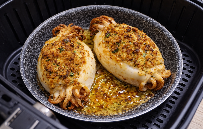 Secondi PiattiSeppie Ripiene in Friggitrice ad AriaScopri Seppie Ripiene in Friggitrice ad Aria: una ricetta tradizionale pugliese con seppie, ingredienti genuini e la croccantezza unica della cottura innovativa. Provala ora!Ricetta di Andrea Bosetti • 26 Gennaio 2026Club delle Ricette è anche su WhatsApp. Non perderti le ricette più nuove e ogni giorno i menu migliori e le idee per cucinare. Iscriviti al Canale Difficoltà MediaPreparazione 30 minutiCottura 20 minutiDosi per 2 persone Guarda le VideoricetteSeguici su YouTube Anelli di Zucchine Seguici su YouTube! Anelli di Zucchine Invia × Facebook Twitter Email Pinterest Salva StampaSeppie Ripiene Croccanti in Friggitrice ad Aria, Ricetta Pugliese LeggeraLa ricetta delle seppie ripiene in friggitrice ad aria è il modo perfetto per portare in tavola tutto il profumo del mare con una preparazione facile e leggera, ideale per chi cerca un secondo piatto saporito ma attento al benessere. Immaginate di tagliare le vostre seppie freschissime, pronte ad accogliere un ripieno per seppie in friggitrice ad aria cremoso di pane, pangrattato e una pioggia di prezzemolo tritato: una combinazione appetitosa capace di sorprendere gli ospiti più esigenti. Con questa tecnica innovativa, non dovrete rinunciare al piacere della crosticina dorata e croccante, ma direte addio alla frittura. Grazie alla cottura con aria calda ad alta velocità otterrete seppie ripiene senza frittura, croccanti fuori e morbide dentro, pronte in pochi minuti!Non c’è nulla di più gratificante che scoprire come cucinare le seppie ripiene con pangrattato in versione moderna: la friggitrice ad aria è infatti un valido alleato per preparare piatti deliziosi con un ridotto apporto di grassi. Potrete gustare seppie ripiene facili e veloci in ogni occasione, perfette anche per una cena leggera grazie all’assenza totale di olio in cottura. Ogni boccone sprigiona tutto il sapore genuino del pesce e delle erbette aromatiche, in una ricetta genuina ma raffinata che conquisterà tutta la famiglia.Questa è anche l’idea ideale se volete portare nuove ispirazioni nella vostra routine: scoprire la ricetta delle seppie ripiene croccanti vi permette di abbinare tradizione e innovazione, senza appesantire la tavola. Provate anche il Gamberoni con la Friggitrice ad Aria o il Salmone con la Friggitrice ad Aria per ampliare il vostro menu a base di pesce, o abbinatela alle Verdure Invernali nella Friggitrice ad Aria per un pasto completo e leggero. È il modo migliore per stupire a pranzo o a cena chi amate, facendo risplendere in tavola la bontà del pesce con un tocco moderno e irresistibile!Ingredienti per 2 persone2 di Seppie fresche (400 g)Per il ripieno:3 fette di Pane Casereccio1 di Uovo30 g di Pecorino60 ml di Latte o acqua1 spicchio di Aglioq.b. di Prezzemoloq.b. di Saleq.b. di PepePer la cottura:q.b. di Olio Extravergine d'OlivaCopia Lista IngredientiApri in AppProcedimentoScarica la nostra APP Con meno pubblicità, puoi creare i tuoi ricettari e ricevere nuove ricette ogni giorno. Scarica APP Per preparare le seppie ripiene in friggitrice ad aria iniziate pulendo le seppie: eliminate la parte interna, l’osso, la pelle, gli occhi e il dente centrale.Staccate le teste e tagliatele a pezzettini, tenetele da parte perché serviranno per preparare il ripieno.Sminuzzate le fette di pane casereccio e tritatele grossolanamente, quindi aggiungete il latte e lavoratelo con le mani per farlo inumidire bene.Unite al pane le teste di seppia a pezzettini, l’uovo, lo spicchio d’aglio schiacciato, il prezzemolo tritato, il pecorino grattugiato, sale e pepe.Mescolate tutto accuratamente fino ad ottenere un composto compatto: deve essere né troppo morbido né troppo asciutto. Se dovesse risultare troppo morbido aggiungete un po’ di pane o pangrattato, se troppo asciutto aggiungete un po’ di latte o acqua.Prendete le seppie pulite e farcitele con il ripieno senza esagerare, lasciando spazio per far combaciare le parti superiori, poi fermatele con degli stecchini.Ungete leggermente con olio il fondo di una teglia adatta alla friggitrice ad aria e spolverizzate con un pizzico di sale, quindi adagiate le seppie ripiene.Se dovesse avanzare del ripieno, formate una polpetta e passatela nel pangrattato prima di cuocerla insieme alle seppie.Irrorate le seppie con un filo d’olio, aggiungete un po’ di sale e una spolverata di pepe.Cuocete nella friggitrice ad aria a 190° per 20 minuti. In alternativa potete cuocerle in forno tradizionale alla stessa temperatura e per lo stesso tempo.Le vostre seppie ripiene in friggitrice ad aria sono pronte per essere servite ben calde con la loro irresistibile crosticina croccante! Ricordate infine di scaricare la nostra App con contenuti esclusivi e meno pubblicità!Varianti e AlternativeNella tradizione pugliese esistono diverse varianti delle seppie ripiene: potete cuocerle al sugo di pomodoro e utilizzare il sughetto per condire la pasta, oppure aggiungere i piselli durante la cottura come nella versione tipica di Vieste. Per un ripieno più ricco, potete incorporare pinoli o uvetta ammollata, oppure sostituire il pecorino con del caciocavallo. Alcune versioni prevedono anche l’aggiunta di mollica di pane tostata nel ripieno per maggiore croccantezza.ConsigliPer ottenere seppie ripiene perfette, assicuratevi che il ripieno sia ben compatto ma non troppo asciutto: deve modellarsi facilmente senza sbriciolarsi. Non riempite troppo le seppie per evitare che il ripieno fuoriesca durante la cottura. Se preferite un sapore più intenso, potete aggiungere al ripieno anche un po’ di pangrattato tostato o una grattugiata di limone per un tocco fresco.ConservazionePotete conservare le seppie ripiene in friggitrice ad aria in frigorifero, ben coperte, per massimo 1 giorno.Commenti ★ ★ ★ ★ ★ × 5 / 5 You need to enable JavaScript to vote Annulla risposta Lascia un commento
