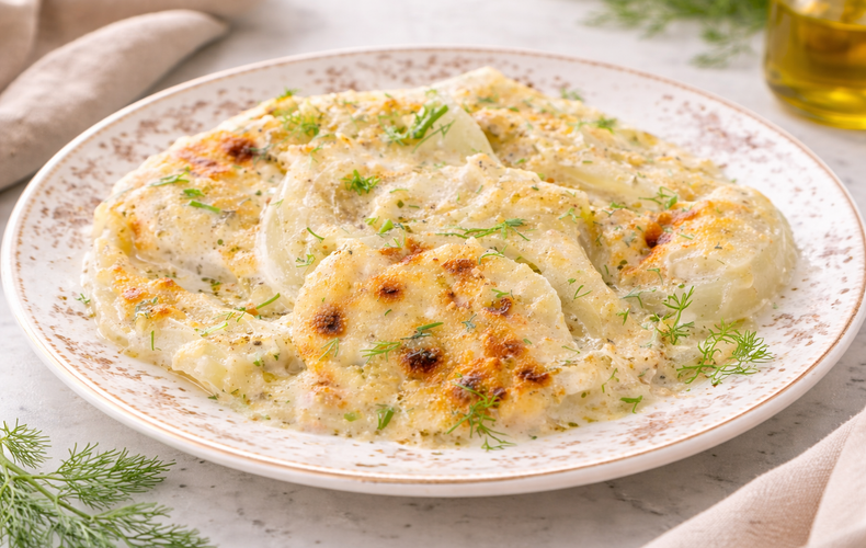 Piatti UniciSformato di FinocchiScopri lo sformato di finocchi: finocchi morbidi avvolti da cremosa besciamella, stracchino e mozzarella filante. Una crosticina dorata che conquista al primo assaggio!Ricetta di Andrea Bosetti • 9 Febbraio 2026Club delle Ricette è anche su WhatsApp. Non perderti le ricette più nuove e ogni giorno i menu migliori e le idee per cucinare. Iscriviti al Canale Difficoltà MediaPreparazione 20 minutiCottura 40 minutiDosi per 4 persone Guarda le VideoricetteSeguici su YouTube Anelli di Zucchine Seguici su YouTube! Anelli di Zucchine Invia × Facebook Twitter Email Pinterest Salva StampaSformato di Finocchi Cremoso e Filante con Besciamella, Perfetto al FornoUn profumo avvolgente che invade la cucina, una consistenza cremosa che si scioglie in bocca: ecco cosa vi aspetta con la ricetta dello sformato di finocchi, una delle idee più golose e pratiche per esaltare questo ortaggio spesso sottovalutato. Perfetto come piatto leggero con finocchi o come piatto unico, lo sformato di finocchi al forno si distingue per la sua versatilità: potete servirlo come ricco antipasto nelle cene tra amici, come contorno raffinato al pranzo della domenica o persino come soluzione vegetariana per un pasto nutriente.La preparazione è semplice e gratificante: scoprite come preparare lo sformato di finocchi con pochi passaggi e ingredienti genuini. Dopo aver sbollentato i finocchi per renderli teneri ma ancora compatti, li disporrete in una pirofila alternando strati con una vellutata besciamella arricchita da formaggi filanti e gustosi, come stracchino e mozzarella. Il parmigiano grattugiato in superficie regala quella crosticina irresistibile che rende il tutto ancor più invitante: ogni boccone è un equilibrio tra la delicata dolcezza dei finocchi e la sapidità dei latticini, un vero comfort food!Se siete alla ricerca di un sformato vegetariano con finocchi che conquisti grandi e piccini, questa proposta fa davvero al caso vostro. La ricetta con finocchi e formaggio è talmente golosa che farà capitolare anche chi non impazzisce per i finocchi: la cremosità del ripieno e la croccantezza della superficie renderanno speciale ogni occasione in cui la porterete in tavola. Inoltre, potrete farne un’ottima idea per cena con finocchi, perfetta per serate in famiglia o per sorprendere gli ospiti con un antipasto semplice con finocchi.Volete variare? Provate il Finocchi al Formaggio al Forno, i Finocchi al Gorgonzola Gratinati o scoprite i Finocchi Gratinati per nuove esplosioni di gusto. Gli amanti degli ortaggi gratinati ameranno anche lo Sformato di Carciofi e Parmigiano o i Finocchi al Forno alla Mediterranea, idee perfette per menù sempre diversi.Insomma, se cercate un modo semplice per cucinare i finocchi senza rinunciare al sapore e alla genuinità, lasciatevi conquistare da questa ricetta che unisce tradizione e creatività con pochi ingredienti ma tanto cuore.Ingredienti per 4 persone4 di Finocchi grandiq.b. di Saleq.b. di Olio Extravergine d'Oliva200 g di Mozzarella per Pizza o scamorza60 g di Parmigiano Reggianoq.b. di Pane GrattugiatoPer la besciamella allo stracchino:200 ml di Besciamella150 g di Stracchino40 ml di Latteq.b. di PepeCopia Lista IngredientiApri in AppProcedimentoScarica la nostra APP Con meno pubblicità, puoi creare i tuoi ricettari e ricevere nuove ricette ogni giorno. Scarica APP Per preparare lo sformato di finocchi iniziate lavando accuratamente i finocchi sotto acqua corrente. Tagliate il gambo duro sopra il bulbo ed eliminate le parti esterne più coriacee, quindi affettate i finocchi a fette abbastanza sottili, dello spessore di circa mezzo centimetro. Mettete sul fuoco un tegame capiente con abbondante acqua e portate a bollore.Quando l’acqua bolle aggiungete una presa di sale grosso e tuffatevi i finocchi affettati. Lasciateli sbollentare per circa 3-4 minuti dalla ripresa del bollore: dovranno risultare morbidi ma non sfatti. Scolateli con una schiumarola e trasferiteli in uno scolapasta per farli intiepidire completamente.Una volta intiepiditi, asciugate molto bene i finocchi con carta assorbente da cucina per eliminare l’acqua in eccesso: questo passaggio è fondamentale per evitare che lo sformato risulti troppo acquoso. Mettete da parte qualche ciuffetto della barba dei finocchi e tritatela finemente.Preparate ora la besciamella allo stracchino: in un pentolino versate la besciamella già pronta, aggiungete lo stracchino a pezzetti e il latte. Mettete sul fuoco a fiamma dolce e mescolate continuamente con un frustino o un cucchiaio di legno fino a quando lo stracchino si sarà completamente sciolto e avrete ottenuto una crema liscia e omogenea.Insaporite la besciamella con un po’ di pepe macinato al momento e unite la barba dei finocchi tritata finemente. Mescolate per amalgamare bene tutti gli ingredienti e lasciate intiepidire la crema mentre preparate la teglia.Prendete una teglia antiaderente di circa 20×30 cm e spolverizzate il fondo con pangrattato e un po’ di formaggio grattugiato. Distribuite uniformemente e luccidate con un filo di olio extravergine d’oliva. Questa base croccante eviterà che i finocchi si attacchino e donerà un tocco gustoso alla preparazione.Disponete il primo strato di finocchi sul fondo della teglia, adagiandoli uno accanto all’altro e leggermente sovrapposti per coprire tutta la superficie. Conditeli con un filo di olio extravergine d’oliva e un pizzico di sale, quindi distribuite sopra parte della mozzarella tagliata a cubetti o a striscioline.Versate alcune cucchiaiate di besciamella allo stracchino sui finocchi, distribuendola uniformemente con il dorso del cucchiaio. Spolverizzate con abbondante parmigiano grattugiato, senza essere parsimoniosi: il formaggio contribuirà a creare quella crosticina dorata irresistibile.Procedete con il secondo strato di finocchi, disponendoli questa volta nel verso opposto rispetto a quelli sottostanti per una migliore stratificazione. Conditeli nuovamen
