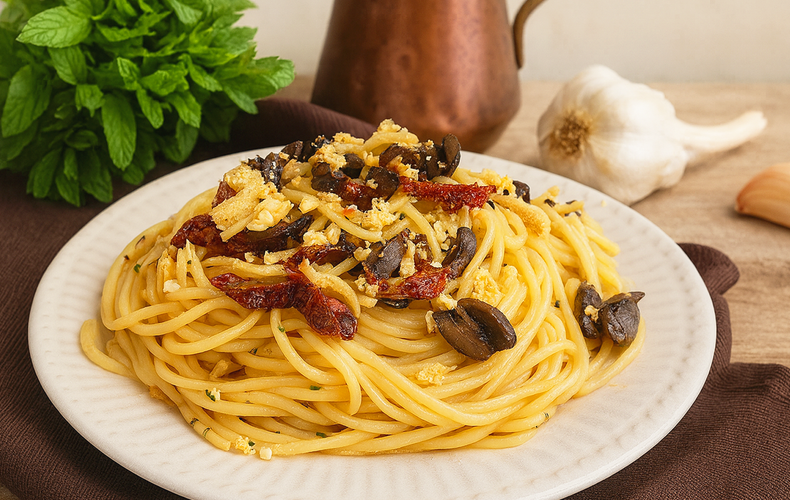 Primi PiattiSpaghetti alla GravunaroScopri gli Spaghetti alla Gravunaro, ricetta napoletana autentica con olive nere, alici e peperoncino. Gusto mediterraneo in pochi minuti, profumo e croccantezza irresistibiliRicetta di Giorgio Loda • 17 Novembre 2025Club delle Ricette è anche su WhatsApp. Non perderti le ricette più nuove e ogni giorno i menu migliori e le idee per cucinare. Iscriviti al Canale Difficoltà MediaPreparazione 10 minutiCottura 10 minutiDosi per 4 persone Guarda le VideoricetteSeguici su YouTube Anelli di Zucchine Seguici su YouTube! Anelli di Zucchine Invia × Facebook Twitter Email Pinterest Salva StampaSpaghetti alla Gravunaro Gustosi e Croccanti, Ricetta Napoletana OriginaleLa ricetta degli spaghetti alla Gravunaro è un vero viaggio nei sapori autentici di un tempo, perfetta per chi cerca un primo piatto facile e veloce ma ricco di personalità. Immaginate di tornare a casa dopo una lunga giornata e trovare, in pochi minuti, sulla vostra tavola un piatto dal profumo intenso, sapido e deciso, frutto di ingredienti rustici e genuini: olive nere, alici sott’olio, aglio, peperoncino e l’immancabile olio extravergine d’oliva. E se volete dare un tocco ancora più goloso, potete arricchire questa meraviglia con pancetta croccante e pecorino grattugiato, trasformando i spaghetti alla Gravunaro con pancetta e spaghetti alla Gravunaro con pecorino in una versione irresistibile, perfetta per quelle serate in cui si ha voglia di comfort food senza troppe complicazioni.La bellezza di questa ricetta degli spaghetti rustici sta proprio nella sua semplicità: poche mosse, nessun passaggio complicato e tutta la forza di sapori che funzionano sempre insieme. Un vero abbraccio per chi ama la pasta con pancetta e pecorino o sta cercando una spaghetti con sugo bianco che sia diverso dal solito. Gli spaghetti alla Gravunaro, con il loro sugo corposo ma senza panna, sono ideali se desiderate servire in tavola degli spaghetti cremosi senza panna, adatti anche come piatto di pasta per cene veloci o pranzi spensierati tra amici.E se siete alla ricerca di altre idee per variare i vostri menù, lasciatevi tentare dalla Pasta ai 4 Formaggi, dalla cremosa Pasta Gorgonzola e Noci o dalla deliziosa Pasta Cremosa al Formaggio e Bacon: alternative perfette per chi ama la buona tavola e i sapori avvolgenti. Ora non resta che scoprire come preparare gli spaghetti alla Gravunaro e portare in cucina tutta la magia di un piatto semplice ma sorprendente!Ingredienti per 4 persone350 g di Spaghetti2 spicchi di Aglio7 Alici filetti sott'olioq.b. di Peperoncino4 cucchiai di Olive Nere denocciolateq.b. di Prezzemolo6 Pomodori Secchi sott’olioq.b. di Olio Extravergine d'Oliva1 di Tarallo sbriciolatiCopia Lista IngredientiApri in AppProcedimentoScarica la nostra APP Con meno pubblicità, puoi creare i tuoi ricettari e ricevere nuove ricette ogni giorno. Scarica APP Per preparare gli spaghetti alla gravunaro, tritate finemente gli spicchi d’aglio, le alici sott’olio e un po’ di peperoncino, regolando la quantità in base al vostro gusto.Scaldate un’abbondante dose di olio extravergine d’oliva in una padella capiente o in un wok, quindi unite il trito preparato e fate soffriggere dolcemente fino a quando le alici si saranno sciolte e l’aglio sarà dorato.Snocciolate e tritate finemente le olive nere, quindi aggiungetele in padella. Mescolate per amalgamare bene gli aromi e lasciate cuocere qualche minuto a fiamma bassa.Unite un mestolo dell’acqua di cottura degli spaghetti per creare una salsina cremosa, continuando a mescolare.Lessate gli spaghetti in abbondante acqua salata e scolateli al dente. Trasferiteli nella padella con il condimento e mantecate a fuoco basso per qualche minuto.Aggiungete i pomodori secchi sott’olio tagliati a striscioline e il prezzemolo tritato, quindi mescolate bene fino a quando la pasta sarà ben condita.Servite gli spaghetti alla gravunaro caldi, completando con taralli sbriciolati sopra ogni piatto per una piacevole nota croccante. Ricordate infine di scaricare la nostra App con contenuti esclusivi e meno pubblicità!Varianti e AlternativeUna variante interessante prevede l’aggiunta di capperi dissalati o di acciughe fresche al posto di quelle sott’olio. Per una versione più leggera potete ridurre la quantità d’olio e olive.ConsigliPer un sapore più intenso, scegliete alici di buona qualità e taralli napoletani ‘nzogna e pepe’. Potete anche aggiungere un pizzico di pangrattato tostato per aumentare la croccantezza.ConservazioneGli spaghetti alla gravunaro vanno gustati al momento, ma potete conservarli in frigorifero per un giorno in un contenitore ermetico e riscaldarli in padella con un filo d’olio prima di servirli.Commenti ★ ★ ★ ★ ★ × 4 / 5 You need to enable JavaScript to vote Annulla risposta Lascia un commento
