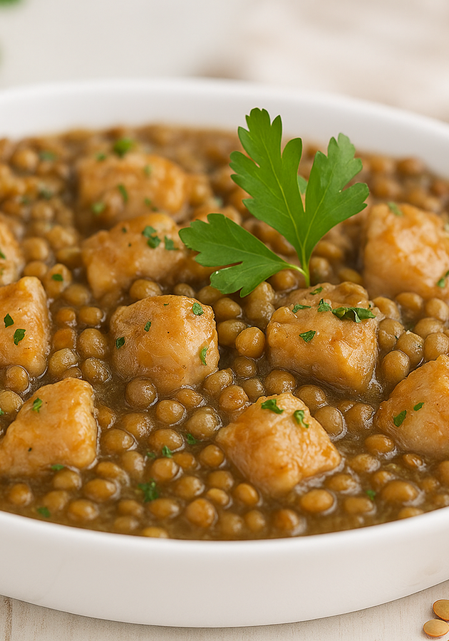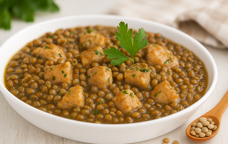 Secondi PiattiSpezzatino di Pollo e LenticchieScopri lo Spezzatino di Pollo e Lenticchie: bocconcini teneri, lenticchie nutrienti e un tocco di vino bianco per un piatto cremoso e veloce da preparare. Provalo ora!Ricetta di Giorgio Loda • 5 Novembre 2025Club delle Ricette è anche su WhatsApp. Non perderti le ricette più nuove e ogni giorno i menu migliori e le idee per cucinare. Iscriviti al Canale Difficoltà MediaPreparazione 10 minutiCottura 20 minutiDosi per 3 persone Guarda le VideoricetteSeguici su YouTube Anelli di Zucchine Seguici su YouTube! Anelli di Zucchine Invia × Facebook Twitter Email Pinterest Salva StampaSpezzatino di Pollo e Lenticchie Cremoso, Pronto in 40 MinutiQuando cercate conforto nei profumi di casa, lo spezzatino di pollo con lenticchie è il secondo piatto che racconta gusto e calore, in grado di unire genuinità e nutrimento in una preparazione dal sapore irresistibile. Un piatto unico di pollo e lenticchie che soddisfa il palato e riempie la cucina con aromi avvolgenti: bocconcini di pollo teneri che si legano alla perfezione con le lenticchie, ricche di proteine, fibre e benefici per il corpo e la mente. Questo spezzatino con lenticchie si prepara in poco tempo, grazie alle lenticchie già cotte, senza rinunciare alla bontà di uno stufato tradizionale. Basterà infarinare il pollo e lasciarlo dorare delicatamente, sfumare con vino bianco per esaltare il sapore e poi coccolare gli ingredienti in un sugo cremoso e vellutato che conquista dal primo assaggio.È la ricetta di pollo e lenticchie perfetta per chi vuole portare in tavola un secondo piatto con pollo sano, completo e saziante, ideale nelle serate d’autunno o quando il clima invita a riscoprire il piacere della cucina lenta. Che siate alla ricerca di una ricetta proteica con legumi e pollo per le esigenze di tutta la famiglia, oppure vogliate sperimentare come cucinare lo spezzatino di pollo in modo originale, questo piatto si presta a ogni occasione.Accompagnate il vostro pollo in umido con lenticchie magari con un ottimo pane rustico o una polenta morbida, e lasciatevi ispirare anche da altre proposte invitanti, perfette per variare il vostro menù: provate anche il Pollo con Fagioli, la raffinata Tajine di Pollo e Verdure oppure, se amate i sapori intensi, il profumato Pollo con Curcuma, Mandorle e Uvetta. Scegliete questa ricetta sana con pollo quando volete regalare agli amici e ai vostri cari un abbraccio di sapori, pronto in meno di un’ora, senza compromessi tra leggerezza e gusto autentico.Ingredienti per 3 persone400 g di Petto di Pollo intero, da fare a bocconcini250 g di Lenticchie4 cucchiai di Farina 00mezzo bicchiere di Vino Biancoq.b. di Succo di Limoneq.b. di Olio Extravergine d'Olivaq.b. di Burroq.b. di Sale Fineq.b. di Pepe NeroCopia Lista IngredientiApri in AppProcedimentoScarica la nostra APP Con meno pubblicità, ricettari personali e nuove ricette per cucinare ogni giorno. Scarica APP gratis Per preparare lo spezzatino di pollo e lenticchie, iniziate dalla preparazione delle lenticchie. Se utilizzate lenticchie in scatola, scolatele in un colino e sciacquatele accuratamente sotto acqua corrente fredda per eliminare l’eccesso di liquido e di sale; se invece preferite lenticchie secche, mettetele in ammollo in acqua fredda per almeno 2-3 ore (o tutta la notte), dopodiché scolatele e aggiungete la quantità di acqua corrispettiva al triplo del loro volume. Lessate le lenticchie secche in una pentola con acqua fredda a fiamma media-bassa per 30-40 minuti, aggiungendo acqua calda se necessario durante la cottura; una volta tenere, scolatele e riservate.Tagliate il petto di pollo in cubetti uniformi di circa 2-3 centimetri e adagiateli in un piatto fondo. Cospargete la carne con la farina e rigiratela delicatamente, assicurandovi che ogni boccone sia uniformemente infarinato; rimuovete l’eccesso di farina scuotendo il piatto.In una padella dai bordi alti versate l’olio extravergine d’oliva e il burro, quindi accendete la fiamma a medio-bassa e mescolate delicatamente fino a ottenere un composto omogeneo e profumato, caratterizzato da un delicato aroma di nocciola.Alzate la fiamma a media e aggiungete i cubetti di pollo infarinati nella padella, facendoli rosolare da tutti i lati fino a quando non assumeranno un colore dorato intenso, operazione che richiede circa 8-10 minuti complessivi.Quando la carne avrà raggiunto il colore desiderato, versate il vino bianco secco nella padella, mescolando bene e permettendo che il liquido sfrigoli e si riduca leggermente, rilasciando gli aromi alcalini tipici di un buon vino.Appena inizierà a formarsi una delicata cremina sulla base della padella, unite le lenticchie (sia che provengano dalla scatola sia che siano state da voi lessate), aggiungete il sale, il pepe nero macinato fresco e versate il succo di limone appena spremuto, circa 2-3 cucchiai a seconda della vostra preferenza di acidità.Mescolate tutto con cura, utilizzando un cucchiaio di legno, permettendo ai sapori di combinarsi perfettamente e amalgamarsi in una preparazione cremosa e aromatica; lasciate sobbollire a fiamma dolce per ulteriori 5-8 minuti, assicurandovi che il piatto mantenga la giusta cremosità.Impiattate lo spezzatino caldo nei piatti di portata, assicurandovi di distribuire equamente la carne, le lenticchie e il sugo cremoso, e servite immediatamente ai vostri commensali, in modo che il piatto conservi integralmente la sua cremosità, il suo calore e il suo sapore delicato e avvolgente. Ricordate infine di scaricare la nostra App con contenuti esclusivi e meno pubblicità!Varianti e AlternativePotete aggiungere verdure di stagione come carote, sedano o spinaci per un piatto ancora più ricco e colorato. Per chi ama i sapori intensi, provate ad aromatizzare con un pizzico di curry o paprica. Se avete disponibilità di tempo, potete utilizzare lenticchie secche e cuocerle direttamente nel piatto stesso, aumentando il tempo di cottura di circa 40 minut