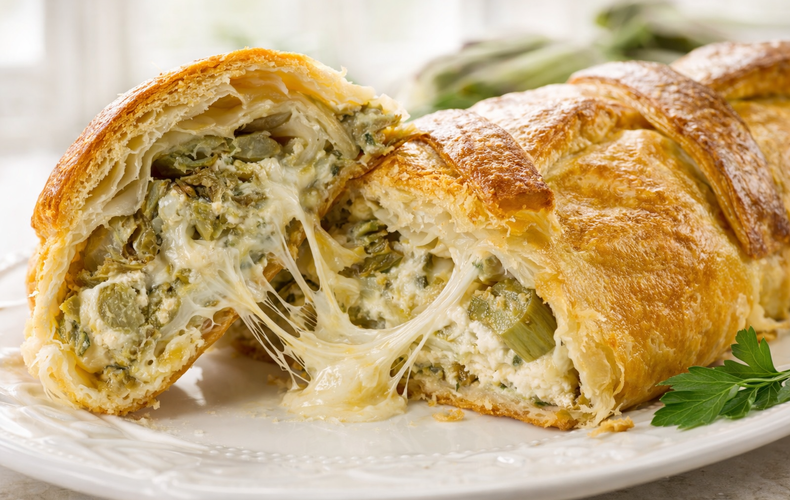 Torte SalateStrudel Salato ai CarciofiLo Strudel Salato ai Carciofi è un gustoso Rotolo di Pasta Sfoglia farcito con Carciofi, Ricotta e Pecorino. Facile e veloce, è perfetto per l'aperitivo!Ricetta di Andrea Bosetti • 1 Aprile 2026Difficoltà FacilePreparazione 15 minutiCottura 10 minutiDosi per 4 persone Invia × Facebook Twitter Email Pinterest Salva StampaLo Strudel Salato ai Carciofi è una gustosissima torta salata che si prepara in modo facile e veloce. Realizzato con pochi e semplici ingredienti, si tratta semplicemente di un Rotolo di Pasta Sfoglia Farcito con Carciofi, Ricotta e Pecorino.Perfetto per l’aperitivo oppure da servire come antipasto, questo Strudel di Carciofi è ideale anche per il pranzo di Pasqua oppure semplicemente per il picnic di Pasquetta. Lo Strudel di Pasta Sfoglia con i Carciofi è anche un’ottima soluzione se avete ospiti improvvisi e non sapete proprio cosa cucinare!Se siete alla ricerca di altre Ricette di Strudel Salati, non perdetevi anche lo Strudel Salato di Broccoli e Scamorza, lo Strudel Salato con Gorgonzola e Pere e lo Strudel di Ricotta e Spinaci! E ora eccovi la ricetta dello Strudel Salato ai Carciofi!Ingredienti per 4 persone5 Carciofi1 confezione di Pasta Sfoglia Rettangolare150 g di Ricotta100 g di Pecorino Grattugiato1 spicchio di Aglioq.b. di Succo di Limoneq.b. di Latteq.b. di Olio Extravergine d'Olivaq.b. di Sale FinoCopia Lista IngredientiApri in AppProcedimentoPer preparare lo Strudel Salato ai Carciofi iniziate dalla pulizia dei carciofi. Rimuovete le foglie esterne più dure, eliminate il gambo e tagliate la parte delle punte.Tagliateli in quattro, eliminate la barbetta centrale e tagliateli a fettine. Man mano che li tagliate a fette, metteteli in una ciotola colma di acqua e limone per evitare che anneriscano.In un’ampia padella antiaderente fate soffriggere l’aglio in un filo di olio extravergine d’oliva. Quando si è scurito, rimuovetelo dalla padella e aggiungete i carciofi precedentemente sgocciolati.Fateli rosolare per qualche minuto, mescolando per cuocerli in modo omogeneo, poi spegnete il fuoco e lasciateli raffreddare completamente.In una ciotola ampia mescolate la ricotta, il Pecorino grattugiato, i carciofi raffreddati e un pizzico di sale, fino ad ottenere un ripieno cremoso ed omogeneo.Srotolate sul piano di lavoro la Pasta Sfoglia e stendetela leggermente con un matterello. Distribuite il ripieno sul lato corto del rettangolo, coprendo solo la prima parte della pasta.Con molta delicatezza, arrotolate piano piano la pasta sul ripieno, fino a chiuderla completamente. Bagnate leggermente i bordi della pasta con un goccio di acqua il modo che aderiscano perfettamente l’un l’altro.Spennellate lo strudel con un goccio di latte e cuocete in forno preriscaldato a 180°C-200°C gradi per circa 10 minuti, o comunque fino a quando la sfoglia diventa dorata. Una volta pronto, lasciate leggermente raffreddare e servite lo Strudel Salato ai Carciofi! Ricordate infine di scaricare la nostra App con contenuti esclusivi e meno pubblicità!Varianti e AlternativeSe volete potete arricchire il ripieno dello Strudel Salato ai Carciofi con altri ingredienti come cubetti di Speck, fettine di Prosciutto Cotto oppure Besciamella e Scamorza.ConsigliSe temete che il vostro Strudel Salato ai Carciofi si apra in cottura, potete realizzare delle striscioline di Pasta Sfoglia da posizionare dove si chiude lo Strudel per tenerlo più saldo.ConservazioneLo Strudel Salato ai Carciofi si conservare in frigorifero per qualche giorno, chiuso in un contenitore ermetico.Commenti ★ ★ ★ ★ ★ × 5 / 5 You need to enable JavaScript to vote Annulla risposta Lascia un commento