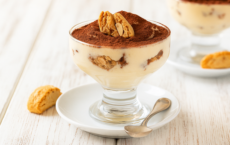 DolciTiramisù con CantucciScopri il Tiramisù con Cantucci, una raffinata rivisitazione con mascarpone cremoso e cantucci alle mandorle ammorbiditi nel caffè. Provalo e sorprendi i tuoi ospiti!Ricetta di Giorgio Loda • 6 Novembre 2025Club delle Ricette è anche su WhatsApp. Non perderti le ricette più nuove e ogni giorno i menu migliori e le idee per cucinare. Iscriviti al Canale Difficoltà MediaPreparazione 20 minutiDosi per 4 persone Guarda le VideoricetteSeguici su YouTube Anelli di Zucchine Seguici su YouTube! Anelli di Zucchine Invia × Facebook Twitter Email Pinterest Salva StampaTiramisù con Cantucci Croccanti alle Mandorle, Cremoso e Facile da PreparareSiete pronti a sorprendere i vostri ospiti con un dessert raffinato e fuori dagli schemi? Il tiramisù con cantucci è la ricetta che cercate: una variante irresistibile, perfetta per chi ama sperimentare nuovi sapori e consistenze nei dolci tradizionali. In questa ricetta tiramisù senza savoiardi, lasciamo spazio a fragranti cantucci alle mandorle, capaci di assorbire il caffè mantenendo un cuore croccante e aromatico. Il tutto è avvolto da una voluttuosa crema al mascarpone, che, unita ai biscotti, dà vita a un dolce al cucchiaio con biscotti semplice da preparare, ma dal risultato stupefacente anche per chi non vuole trascorrere troppo tempo ai fornelli.Questo mascarpone e cantucci dolce è ideale per chi desidera un tiramisù facile senza uova, adatto anche a grandi occasioni o per un fine pasto elegante e indimenticabile. Inoltre, rappresenta la scelta perfetta per chi cerca una ricetta veloce tiramisù con biscotti secchi senza dover rinunciare all’equilibrio tra gusto, cremosità e una leggera nota croccante tipica dei cantucci. Potete servire il vostro tiramisù alternativo in pratiche monoporzioni per un tocco chic oppure in una capiente pirofila da condividere tutti insieme, rendendo il momento del dessert ancora più conviviale.Se siete alla ricerca di altre idee originali e golose, lasciatevi ispirare dalle varianti che abbiamo selezionato per voi: il Tiramisù con il Pandoro per le feste, il classico Tiramisù con i Pavesini, il sorprendente Tiramisù alla Zucca, la golosità delicata del Tiramisù al Pistacchio e l’originale Rotolo al Tiramisù.Portate in tavola un dessert con cantucci capace di conquistare tutti con la sua unicità: il tiramisù crema mascarpone sarà il vostro nuovo dolce per fine pasto preferito, perfetto per chi ama distinguersi con creatività anche a tavola.Ingredienti per 4 persone2 di Uova3 cucchiai di Zucchero175 g di Mascarpone200 ml di Caffèq.b. di Biscotti Cantucciq.b. di Cacao Amaro in PolvereCopia Lista IngredientiApri in AppProcedimentoScarica la nostra APP Con meno pubblicità, ricettari personali e nuove ricette per cucinare ogni giorno. Scarica APP gratis Per preparare il tiramisù con cantucci, cominciate separando con cura i tuorli dagli albumi. Montate gli albumi a neve ben ferma utilizzando uno sbattitore elettrico, fino ad ottenere una consistenza soffice e compatta.In una capiente ciotola sbattete i tuorli con lo zucchero fino ad ottenere un composto spumoso e chiaro. Aggiungete il mascarpone al composto di tuorli e zucchero, amalgamando delicatamente fino a ottenere una crema omogenea e vellutata.Incorporate gli albumi montati alla crema di mascarpone, mescolando con delicatezza utilizzando un cucchiaio di legno e un movimento dal basso verso l’alto, per non smontare gli albumi e mantenere l’aria incorporata.Preparate il caffè e versate il contenuto in una ciotola, permettendogli di intiepidire leggermente prima dell’utilizzo.Iniziate la composizione delle coppe: bagnate i cantucci brevemente nel caffè tiepido e disponete uno strato sul fondo di ciascuna coppa. Aggiungete uno strato di crema al mascarpone, seguito da una leggera spolverata di cacao amaro in polvere.Continuate l’assemblaggio alternando strati di cantucci bagnati nel caffè, crema di mascarpone e cacao, fino a riempire completamente le coppe. Completate la presentazione del dolce con una generosa spolverata di cacao amaro in polvere sulla superficie.Riponete le coppe in frigorifero per almeno due ore prima di servire, permettendo ai sapori di fondersi perfettamente e al dolce di raggiungere la giusta consistenza. Ricordate infine di scaricare la nostra App con contenuti esclusivi e meno pubblicità!Varianti e AlternativePotete realizzare questa ricetta sostituendo i cantucci con altri biscotti secchi come savoiardi o biscotti all’anice. Per una versione più delicata, riducete la quantità di cacao e aggiungete una spolverata di cannella. Se desiderate un tiramisù con note di nocciola, sostituite il caffè puro con un miscuglio di caffè e liquore agli amaretti. In alternativa alle coppe monoporzioni, preparate il dolce in una vasca di medie dimensioni per poi tagliarlo in quadrati al momento di servire, per una presentazione più informale ma sempre elegante.ConsigliPer una preparazione ancora più sicura dal punto di vista igienico-sanitario, potete pastorizzare le uova utilizzando il metodo dello sciroppo. Assicuratevi che i cantucci non si imbevano troppo di caffè: l’immersione deve essere veloce per mantenere la loro croccantezza. Se preferite un tiramisù meno alcolico o analcolico, potete sostituire il caffè con una miscela di caffè decaffeinato o utilizzare del caffè freddo. Per un tocco di eleganza aggiuntivo, completate il dolce con una grattugia di cioccolato fondente anziché solo cacao amaro.ConservazioneConservate il tiramisù con cantucci in frigorifero coperto con pellicola trasparente per 2-3 giorni. Non è consigliato congelare questo dolce a causa della sua delicata struttura al cucchiaio. Servite sempre ben freddo direttamente dal frigorifero.Commenti ★ ★ ★ ★ ★ × 5 / 5 You need to enable JavaScript to vote Annulla risposta Lascia un commento