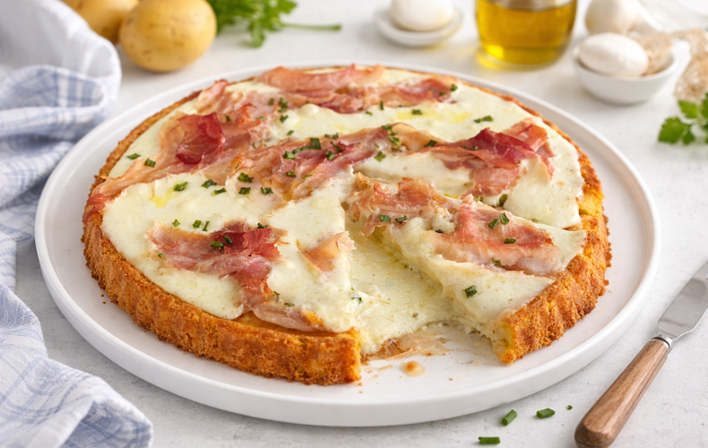 Piatti UniciTorta di Patate con Prosciutto e StracchinoScopri la Torta di Patate con Prosciutto e Stracchino, cremosa dentro e dorata fuori, con patate, stracchino fondente e prosciutto cotto. Provala ora e lasciati conquistareRicetta di Andrea Bosetti • 30 Gennaio 2026Club delle Ricette è anche su WhatsApp. Non perderti le ricette più nuove e ogni giorno i menu migliori e le idee per cucinare. Iscriviti al Canale Difficoltà MediaPreparazione 25 minutiCottura 40 minutiDosi per 10 persone, stampo 24 cm Guarda le VideoricetteSeguici su YouTube Anelli di Zucchine Seguici su YouTube! Anelli di Zucchine Invia × Facebook Twitter Email Pinterest Salva StampaTorta di Patate con Prosciutto e Stracchino Cremosa e Dorata, Facile da PreparareLa ricetta della torta di patate con prosciutto e stracchino è un tripudio di sapori avvolgenti e genuini, pensato per chi desidera portare a tavola un piatto dal cuore morbido e una superficie irresistibilmente dorata. Lasciatevi conquistare dalla semplicità della preparazione, dove le patate, una volta lessate e schiacciate, si trasformano in una base soffice e saporita grazie all’aggiunta di parmigiano, uovo e latte. Questo mix dona alla torta una consistenza cremosa che si esalta con la cottura in forno, regalando una crosticina dorata che fa venire l’acquolina in bocca al solo sguardo.Il vero segreto che rende unica questa torta salata con patate prosciutto e formaggio è la farcitura: uno strato filante di stracchino si fonde dolcemente con fette di prosciutto cotto, creando una sinfonia di gusto e delicatezza a ogni morso. Perfetta per chi cerca una ricetta facile per torta di patate filante e desidera sorprendere amici e famiglia con un tortino rustico ma raffinato, questa proposta si prepara in pochi passaggi ma regala grande soddisfazione.Volete sapere come fare la torta di patate cremosa da servire per una cena veloce o un pranzo che conquisti al primo assaggio? Seguite questi consigli e otterrete una torta di patate per cena veloce oppure una torta di patate morbida per buffet perfetta anche come idea per antipasto con patate e stracchino. E se amate sperimentare, sostituite lo stracchino con la scamorza o provate varianti con speck o mortadella: la torta si adatta a ogni occasione e gusto.Una proposta versatile, ideale anche per chi vuole preparare la torta rustica con stracchino senza stress, magari accompagnando il piatto con altre delizie come la Torta Salata Prosciutto e Patate, la Torta Salata con Patate, Speck, Scamorza e Cipolle Caramellate o la Torta Salata Soffice con Zucchine e Prosciutto Cotto per offrire una vera festa di sapori. Pronti a scoprire la ricetta della torta di patate in forno che farà innamorare tutti? Aprite il forno e lasciatevi avvolgere dal profumo!Ingredienti per 10 persone, stampo 24 cmPer la base della torta:600 g di Patate già lessate1 di Uovo40 g di Parmigiano Reggiano40 ml di Latte1 cucchiaino di Sale Fineq.b. di Pepeq.b. di Olio Extravergine d'Olivaq.b. di Pane GrattugiatoPer farcire la torta salata:200 g di Stracchino100 g di Prosciutto Cottoq.b. di Erba Cipollinaq.b. di Olio Extravergine d'OlivaCopia Lista IngredientiApri in AppProcedimentoScarica la nostra APP Con meno pubblicità, puoi creare i tuoi ricettari e ricevere nuove ricette ogni giorno. Scarica APP Per preparare la Torta di Patate con Prosciutto e Stracchino, iniziate lessando le patate in abbondante acqua salata. Una volta cotte, scolatele e schiacciatele ancora calde all’interno di una ciotola capiente con uno schiacciapatate, in modo da ottenere una purea omogenea.Aggiungete alla purea di patate l’uovo, il parmigiano grattugiato, il latte, il sale e una spolverata di pepe. Mescolate energicamente con un cucchiaio o una forchetta fino ad ottenere un composto morbido, cremoso e ben amalgamato.Spennellate accuratamente uno stampo da crostata da 24 cm con olio extravergine d’oliva e cospargetelo uniformemente con il pangrattato, facendo aderire bene sul fondo e sui bordi. Versate il composto di patate nello stampo, livellate bene la superficie con il dorso di un cucchiaio e cuocete in forno statico preriscaldato a 180°C per 25-30 minuti, fino a quando la base risulterà ben dorata in superficie.Una volta cotta, sfornate la base di patate e lasciatela intiepidire per circa 10 minuti. Capovolgetela delicatamente su una teglia rivestita con carta da forno, aiutandovi con un piatto o un altro stampo per non romperla.Distribuite sulla superficie capovolta lo stracchino a cucchiaiate, spalmatelo delicatamente con il dorso di un cucchiaio per coprire uniformemente tutta la base. Adagiate sopra le fette di prosciutto cotto, distribuendole in modo omogeneo.Rimettete in forno a 180°C per circa 10 minuti, il tempo necessario affinché lo stracchino si sciolga completamente e il prosciutto si riscaldi. Sfornate la torta salata di patate e completate con erba cipollina tritata fresca e un generoso filo di olio extravergine d’oliva. Servite calda o tiepida, tagliando a spicchi come una torta. Ricordate infine di scaricare la nostra App con contenuti esclusivi e meno pubblicità!Varianti e AlternativeQuesta ricetta si presta a numerose varianti creative. Per una versione vegetariana ancora più ricca, sostituite il prosciutto cotto con verdure grigliate come zucchine, melanzane e peperoni. Per un sapore più intenso, utilizzate speck o pancetta affumicata al posto del prosciutto cotto. Lo stracchino può essere sostituito con crescenza per un gusto più delicato, con scamorza affumicata per una nota più decisa, o con gorgonzola dolce per chi ama i formaggi più saporiti. Potete arricchire la base di patate con una manciata di olive nere denocciolate e tritate o con capperi dissalati. Per una versione più sostanziosa, aggiungete alla farcitura delle uova sode tagliate a fette. Se preferite una presentazione diversa, potete preparare la torta utilizzando uno stampo rettangolare anziché rotondo, oppure realizzare delle monoporzioni in stampin