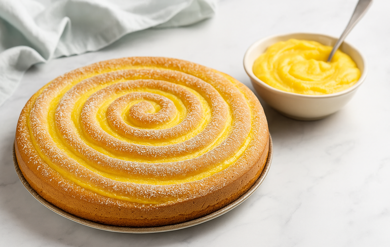 Scopri la Torta Nua Girella, un dolce soffice con spirale di crema pasticcera e un tocco di limone. Facile e veloce, conquista tutti con gusto e semplicità
