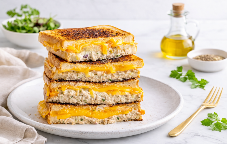 Piatti UniciTuna Melt, Sandwich al TonnoScopri il Tuna Melt, sandwich caldo al tonno con cheddar filante e pane croccante. Ricetta iconica senza pomodoro, irresistibile con maionese artigianale. Provalo ora!Ricetta di Giorgio Loda • 26 Gennaio 2026Club delle Ricette è anche su WhatsApp. Non perderti le ricette più nuove e ogni giorno i menu migliori e le idee per cucinare. Iscriviti al Canale Difficoltà MediaPreparazione 15 minutiCottura 12 minutiDosi per 4 persone Guarda le VideoricetteSeguici su YouTube Anelli di Zucchine Seguici su YouTube! Anelli di Zucchine Invia × Facebook Twitter Email Pinterest Salva StampaTuna Melt Filante e Dorato, Sandwich al Tonno Cremoso Senza PomodoroSe avete voglia di trasformare un semplice pranzo in un’esperienza da veri intenditori dello street food, la ricetta del tuna melt è tutto ciò che vi serve. Questo panino al tonno con formaggio fuso deve il suo successo all’incontro irresistibile tra morbidezza e croccantezza: la farcitura cremosa con tonno in scatola di ottima qualità, amalgamato a maionese, cetriolini sott’aceto, sedano e cipolla rossa addolcita dal prezzemolo fresco, viene racchiusa tra due fette di pane in cassetta imburrato e dorato perfettamente in padella. Qui, il formaggio cheddar si scioglie letteralmente, abbracciando la tuna salad con ogni morso filante e goloso: una vera festa del gusto che sorprenderà famiglia e amici!Scoprire come fare il sandwich al tonno perfetto significa curare ogni dettaglio. Limone fresco e un pizzico di peperoncino ravvivano il sapore del pesce, mentre la doratura del pane in padella antiaderente regala quella crosticina dorata e fragrante che rende unico il vostro panino croccante con formaggio e tonno. Senza l’aggiunta di pomodoro, questa versione si concentra sui sapori autentici della farcitura e del formaggio fuso, garantendo un risultato dal sapore intenso e avvolgente, senza rischiare che il pane diventi umido.Se siete alla ricerca di una ricetta facile per pranzo veloce o di un’idea pranzo con pane e tonno da condividere, il sandwich al tonno gratinato sarà un successo assicurato, sia per un pasto informale che per un brunch sfizioso. Non dimenticate di sperimentare anche altre soluzioni con il tonno: provate la freschissima Insalata Cremosa di Tonno e Avocado, la golosa Mousse al Tonno o le irresistibili Polpette di Tonno. Se vi piace variare, lasciatevi tentare dallo Sformato di Patate e Tonno o da una gustosa Pasta Zucchine e Tonno.Prima che Heated Rivalry diventasse un fenomeno nessuno si aspettava che un semplice panino potesse diventare un simbolo narrativo. Nella serie (visibile in Italia su HBO Max) c’è una scena iconica in cui Ilya prepara un tuna melt per Shane: non è solo cibo, è un gesto carico di significato emotivo e un momento di rottura nei loro rapporti, che ha fatto impazzire i fan e spinto conversazioni virali online. Questo tuna melt è ormai citato ovunque quando si parla di Heated Rivalry, perché incarna quel mix di rivalità, vulnerabilità e desiderio di connessione che definisce la serie.Ingredienti per 4 personePer l'insalata di tonno:200 g di Tonno Sott'Olio peso sgocciolato100 g di Maionese di ottima qualità0.5 di Limone il succo2 di Cetriolini Sott'aceto1 costa di Sedano1 spicchio di Cipolla Rossaq.b. di Prezzemoloq.b. di Peperoncino in Polvereq.b. di Saleq.b. di PepePer il sandwich:8 fette di Pancarrè8 fette di Cheddar30 g di Burro morbidoCopia Lista IngredientiApri in AppProcedimentoScarica la nostra APP Con meno pubblicità, puoi creare i tuoi ricettari e ricevere nuove ricette ogni giorno. Scarica APP Per preparare il Tuna Melt iniziate a preparare l’insalata di tonno: in una ciotola capiente stemperete la maionese con il succo di mezzo limone, aggiungendolo poco alla volta e mescolando bene. Unite una punta di cucchiaino di peperoncino secco in polvere e mescolate ancora.Scolate accuratamente il tonno dall’olio di conservazione e spezzettatelo con una forchetta nella ciotola con la maionese. Tritate finemente i cetriolini sott’aceto e la costa di sedano, quindi uniteli al composto di tonno.Tritate finemente lo spicchio di cipolla rossa e il prezzemolo fresco, quindi aggiungeteli all’insalata di tonno. Mescolate bene tutti gli ingredienti fino a ottenere un composto omogeneo e cremoso. Assaggiate e aggiustate di sale e pepe secondo il vostro gusto, poi tenete da parte.Prendete le fette di pane in cassetta e spalmatele con il burro morbido su un solo lato. Disponetele su un tagliere in modo che 4 fette abbiano il lato imburrato verso il basso e le altre 4 abbiano il lato imburrato verso l’alto: i lati imburrati dovranno risultare all’esterno una volta composti i sandwich.Farcite le 4 fette di pane (quelle con il burro verso il basso) con uno strato generoso di insalata di tonno, distribuendola uniformemente. Sovrapponete 2 fette di formaggio cheddar su ciascun sandwich.Chiudete ogni panino con le fette di pane rimanenti, facendo attenzione che il lato imburrato sia rivolto verso l’esterno. Premete leggermente per far aderire bene gli ingredienti.Scaldate una padella antiaderente a fuoco medio-alto. Quando sarà ben calda, adagiate uno o più panini (a seconda della dimensione della padella) e cuoceteli per circa 2-3 minuti, finché la base non sarà dorata e croccante.Girate delicatamente i sandwich con una paletta larga e cuocete l’altro lato per altri 2-3 minuti, fino a quando il pane mostrerà un bel colore dorato uniforme e il formaggio cheddar si sarà completamente sciolto. Servite i vostri Tuna Melt immediatamente, tagliandoli a metà in diagonale se preferite. Ricordate infine di scaricare la nostra App con contenuti esclusivi e meno pubblicità!Varianti e AlternativePotete personalizzare il vostro Tuna Melt aggiungendo all’insalata di tonno ingredienti come capperi tritati, olive nere snocciolate o un pizzico di senape per un gusto più deciso. Al posto del cheddar potete utilizzare altri formaggi filanti come pr