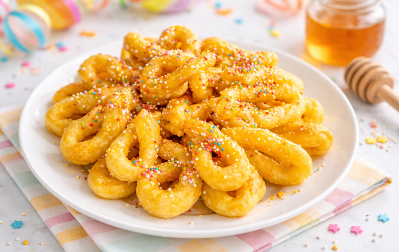 DolciZeppole al Miele di Sal De RisoScopri le Zeppole al Miele di Sal De Riso: deliziose frittelle di Carnevale con agrumi freschi, miele dorato e impasto soffice per un dolce irresistibile e ricco di profumiRicetta di Giorgio Loda • 9 Febbraio 2026Club delle Ricette è anche su WhatsApp. Non perderti le ricette più nuove e ogni giorno i menu migliori e le idee per cucinare. Iscriviti al Canale Difficoltà MediaPreparazione 45 minutiCottura 15 minutiDosi per 4 persone Guarda le VideoricetteSeguici su YouTube Anelli di Zucchine Seguici su YouTube! Anelli di Zucchine Invia × Facebook Twitter Email Pinterest Salva StampaZeppole al Miele di Sal De Riso Croccanti e Agrumate per CarnevaleSe desiderate sorprendere amici e famiglia con un dessert con farina e miele dalla consistenza irresistibilmente morbida, la ricetta delle zeppole al miele di Sal De Riso farà sicuramente al caso vostro. Non si tratta delle solite zeppole di San Giuseppe, ma di una versione ancora più golosa che conquista grazie all’armonia tra il profumo degli agrumi freschi e la dolcezza avvolgente del miele caldo. Se vi state chiedendo come preparare le zeppole soffici come quelle di pasticceria, lasciatevi guidare passo passo: l’impasto, composto da uova, farina, acqua e olio extravergine di oliva, viene insaporito dalla scorza di arancia, limone e clementina, per sprigionare un aroma fresco ogni volta che si addenta una frittella.Realizzare delle zeppole fritte con miele che siano dorate all’esterno e delicate al cuore è più facile di quanto pensiate. Basta cuocere l’impasto fino a che non si staccherà dai bordi della pentola, lasciarlo intiepidire e modellarlo in piccoli nodi che, una volta immersi nell’olio caldo, si gonfiano diventando soffici e fragranti. Terminata la cottura, viene il tocco finale: una colata generosa di miele caldo – che avvolge completamente ogni zeppola – e una pioggia di confettini colorati che strizza l’occhio alle feste di Carnevale, rendendo questo dolce con miele e uova perfetto anche come idea per una zeppola per festa di compleanno o per una ricetta delle zeppole per colazione dal sapore indimenticabile.Non perdete l’occasione di sperimentare la ricetta delle zeppole morbide con miele di Sal De Riso, un capolavoro pronto in pochi gesti che porta in tavola la gioia dei dolci fritti. Per chi ama variare, vi consiglio di provare anche le Frittelle al Miele, le Struffoli o un dolce lievitato come la Torta al Miele, senza dimenticare le Frittelle alle Mele e Uvetta o le Pere cotte al forno con miele e frutta secca per variare il vostro menu di dolci fatti in casa.Ingredienti per 4 personePer l'impasto:500 ml di Acqua450 g di Farina 0050 ml di Olio Extravergine d'Oliva1 di Uovo1 di Arancia scorza grattugiata1 di Limone scorza grattugiata1 Mandarino o clementinaq.b. di SalePer friggere:1 l di Olio di Arachidi per FriggerePer la finitura:q.b. di Mieleq.b. di Codette ColorateCopia Lista IngredientiApri in AppProcedimentoScarica la nostra APP Con meno pubblicità, puoi creare i tuoi ricettari e ricevere nuove ricette ogni giorno. Scarica APP Per preparare le zeppole al miele di Sal De Riso, versate per prima cosa in un pentolino dai bordi alti l’acqua e l’olio extravergine di oliva.Profumate il liquido con la scorza grattugiata dell’arancia, del limone e della clementina, mettete sul fuoco e portate a bollore.Togliete il pentolino dal fuoco e aggiungete in un colpo solo la farina setacciata insieme a un pizzico di sale.Mescolate energicamente con un mestolo di legno fino a ottenere un composto omogeneo.Rimettete il pentolino sul fuoco a fiamma bassa e continuate a cuocere mescolando costantemente per 2-3 minuti, fino a quando l’impasto non si staccherà completamente dalle pareti della pentola.Trasferite l’impasto in una ciotola di acciaio e lasciatelo intiepidire per circa 10 minuti.Aggiungete l’uovo all’impasto intiepidito e amalgamatelo perfettamente con le mani fino a quando non sarà completamente incorporato.Staccate delle piccole porzioni di impasto e formate sul piano di lavoro dei cordoncini lunghi circa 10-12 cm.Annodate ogni cordoncino su se stesso formando una sorta di fiocchetto, premendo leggermente nel punto di giuntura per sigillarlo bene.Scaldate abbondante olio di semi di arachidi in una padella capiente o in una friggitrice e, quando avrà raggiunto la temperatura di 170-180°C, tuffate le zeppole.Friggete le zeppole girandole delicatamente fino a quando non saranno ben dorate e gonfie da tutti i lati.Prelevate le zeppole con un mestolo forato e adagiatele su un vassoio rivestito con carta assorbente da cucina per eliminare l’olio in eccesso.Scaldate il miele a bagnomaria o nel microonde fino a renderlo più fluido, quindi versatelo sulle zeppole ancora calde.Decorate immediatamente con i confettini di zucchero colorati che aderiranno al miele ancora morbido.Servite le zeppole al miele di Sal De Riso ancora tiepide per apprezzarne al meglio la fragranza e la croccantezza. Ricordate infine di scaricare la nostra App con contenuti esclusivi e meno pubblicità!Varianti e AlternativeLe zeppole al miele si prestano a diverse varianti golose. Potete sostituire il miele con lo zucchero semolato aromatizzato alla cannella, oppure glassarle con cioccolato fuso e granella di nocciole. Per una versione più ricca, potete farcirle con crema pasticcera o crema al cioccolato dopo averle fritte e raffreddate. In alcune zone del Sud Italia si usa aromatizzare l’impasto con rum o liquore all’anice al posto degli agrumi. Per chi preferisce sapori più rustici, provate a sostituire parte della farina 00 con farina integrale o di farro, ottenendo zeppole dal gusto più deciso e dalla consistenza leggermente più rustica.ConsigliPer ottenere delle zeppole perfette, è fondamentale cuocere bene l’impasto sul fuoco nella prima fase: deve staccarsi completamente dalle pareti formando una palla compatta. Lasciate intiepidire l’impasto prima di aggiungere l